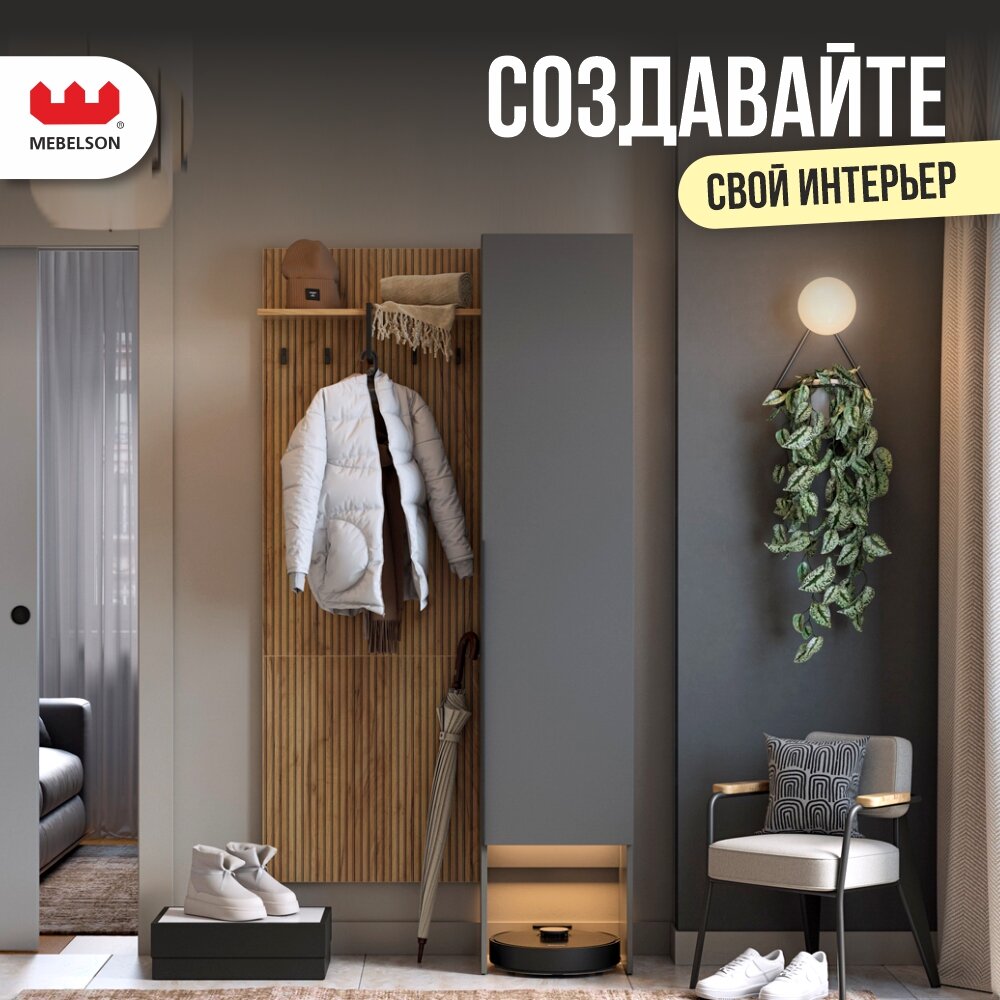Прихожая "Мебельсон К4", ЛДСП дуб крафт золотой/графит, 100*35*195 см. интересное: