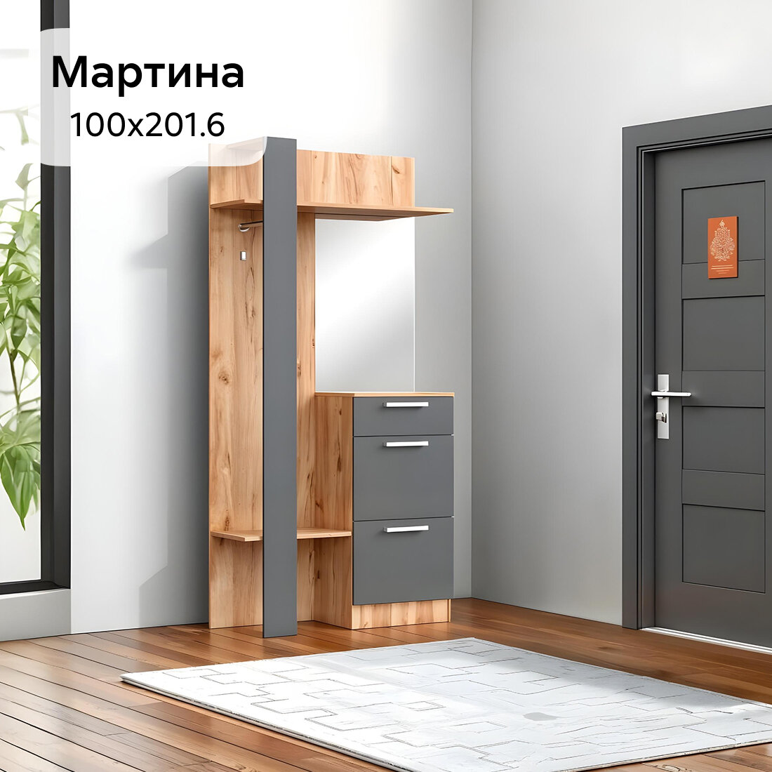 Прихожая с зеркалом Нонтон Мартина, графит / дуб крафт, 100х35.4х201.6 см интересное: