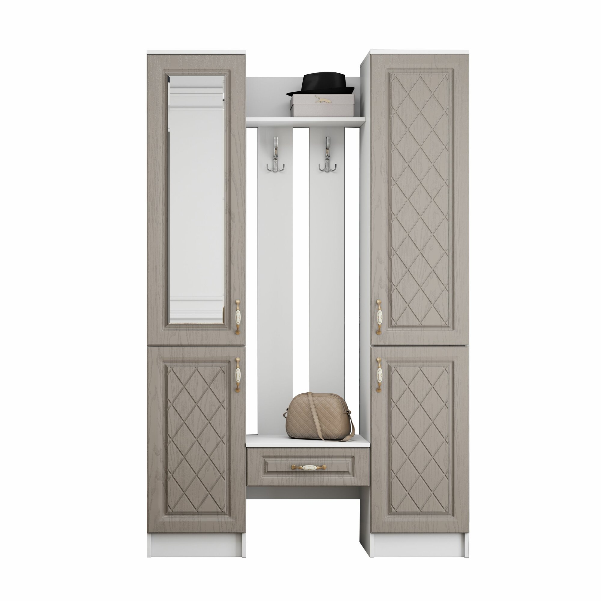Купить Прихожая комплект Либерти МДФ от Линаура, с зеркалом, шкафом, полками и ящиком 130x203x36 см. Белый/Трюфель