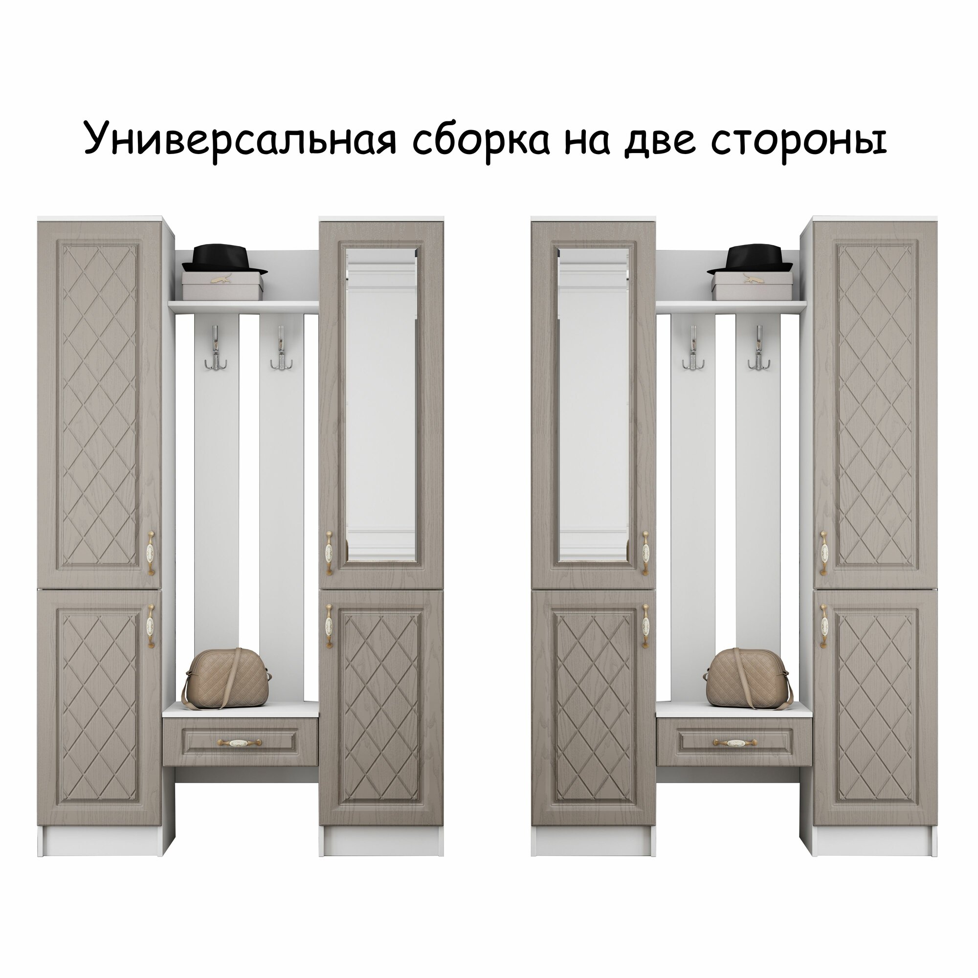 Прихожая комплект Либерти МДФ от Линаура, с зеркалом, шкафом, полками и ящиком 130x203x36 см. Белый/Трюфель интересное: