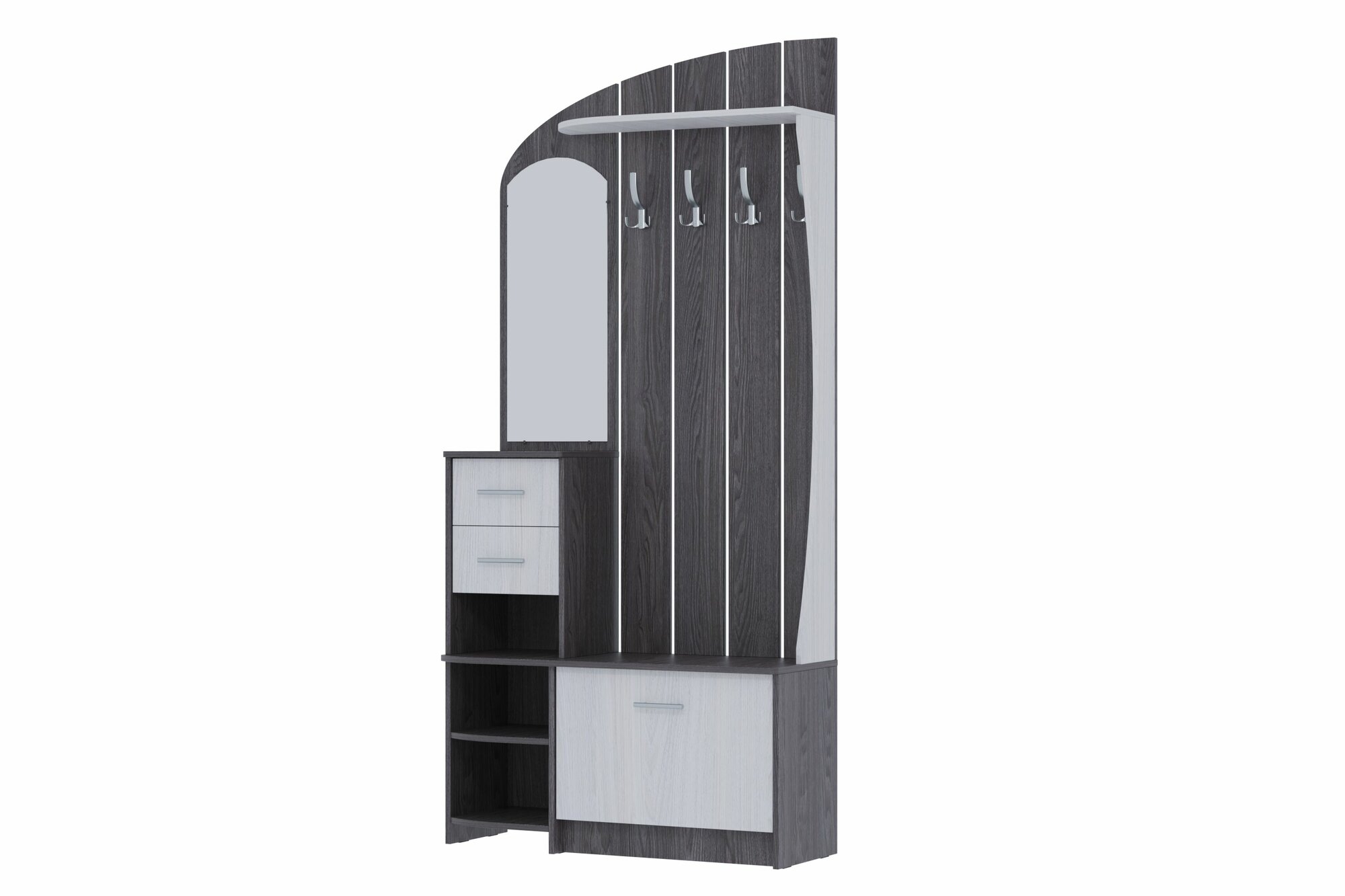 Прихожая комплект САША-6 (правая) от Фант-Мебель, с зеркалом, с обувницей, шкафом и ящиками, 156x203,6x43 см. Ясень темный/Ясень светлый