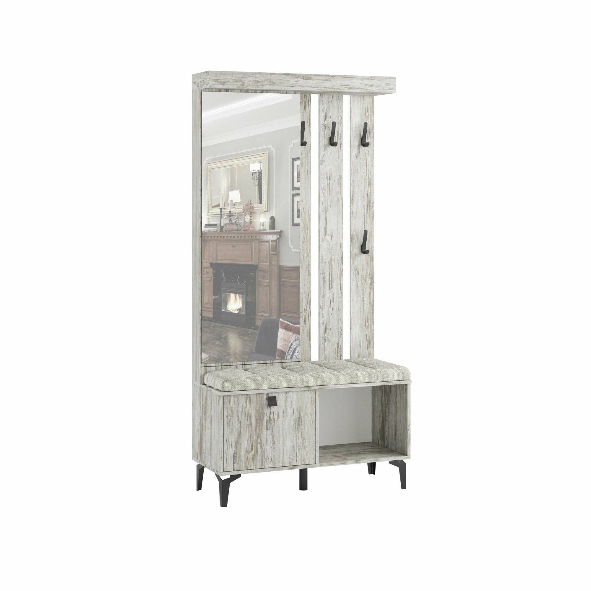 Прихожая Ника, вешалка с зеркалом, белый гладкий,910х354х2032