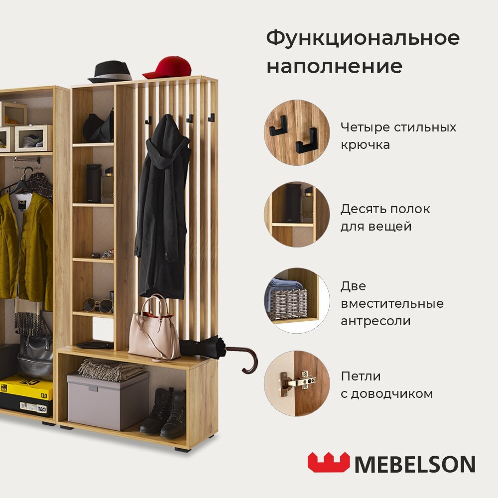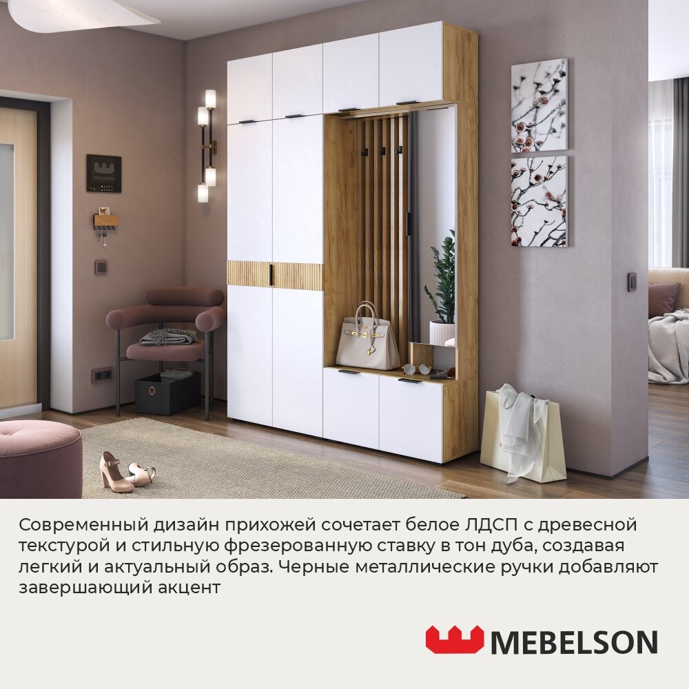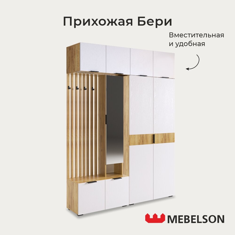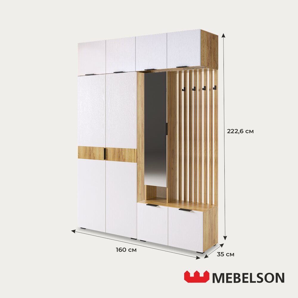 Модульная прихожая "Бери К4", дуб крафт золотой/белое дерево, 160х35х222,6 см, Mebelson интересное: