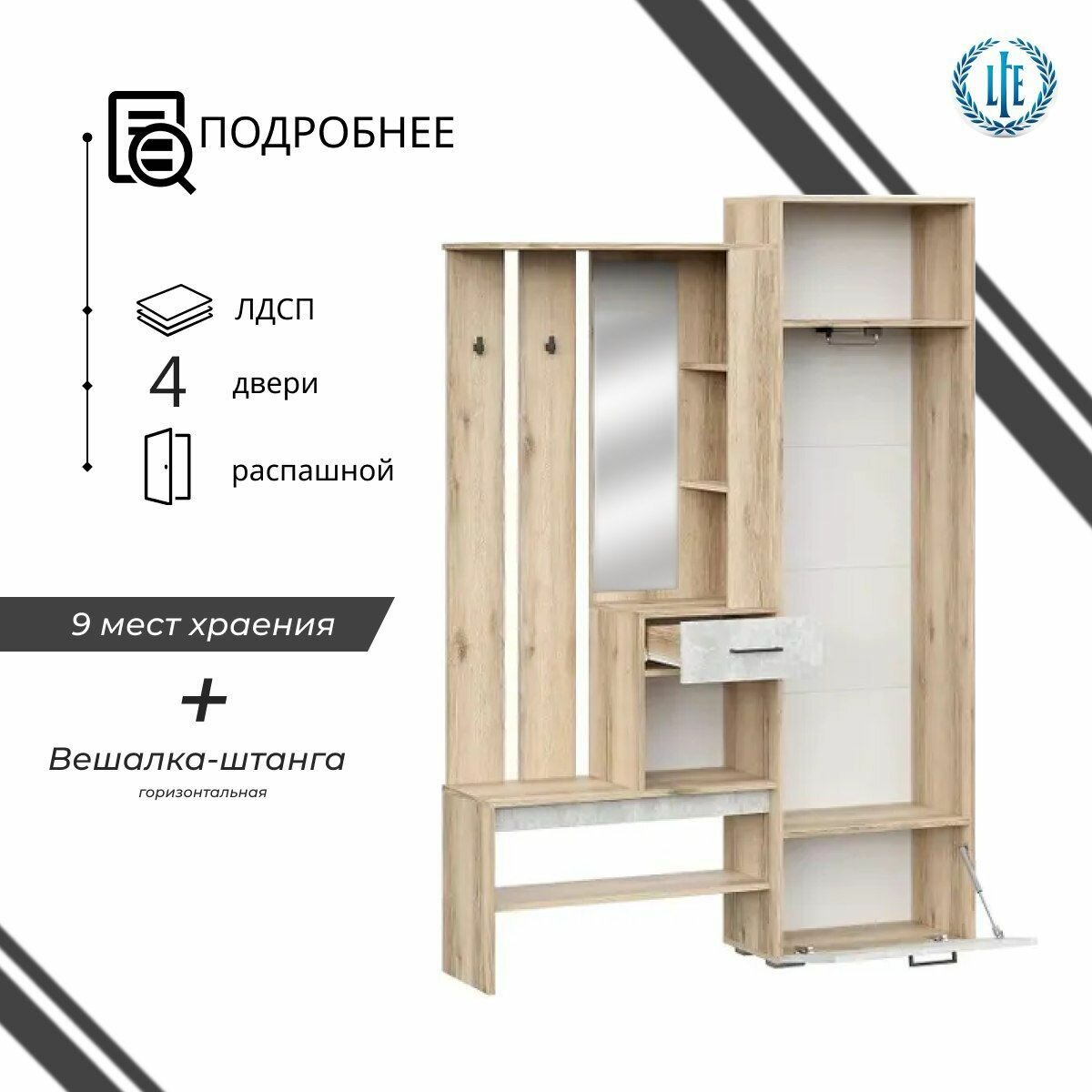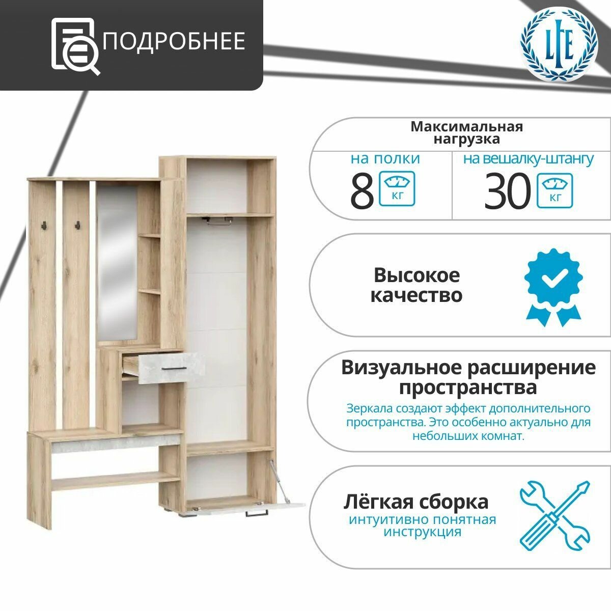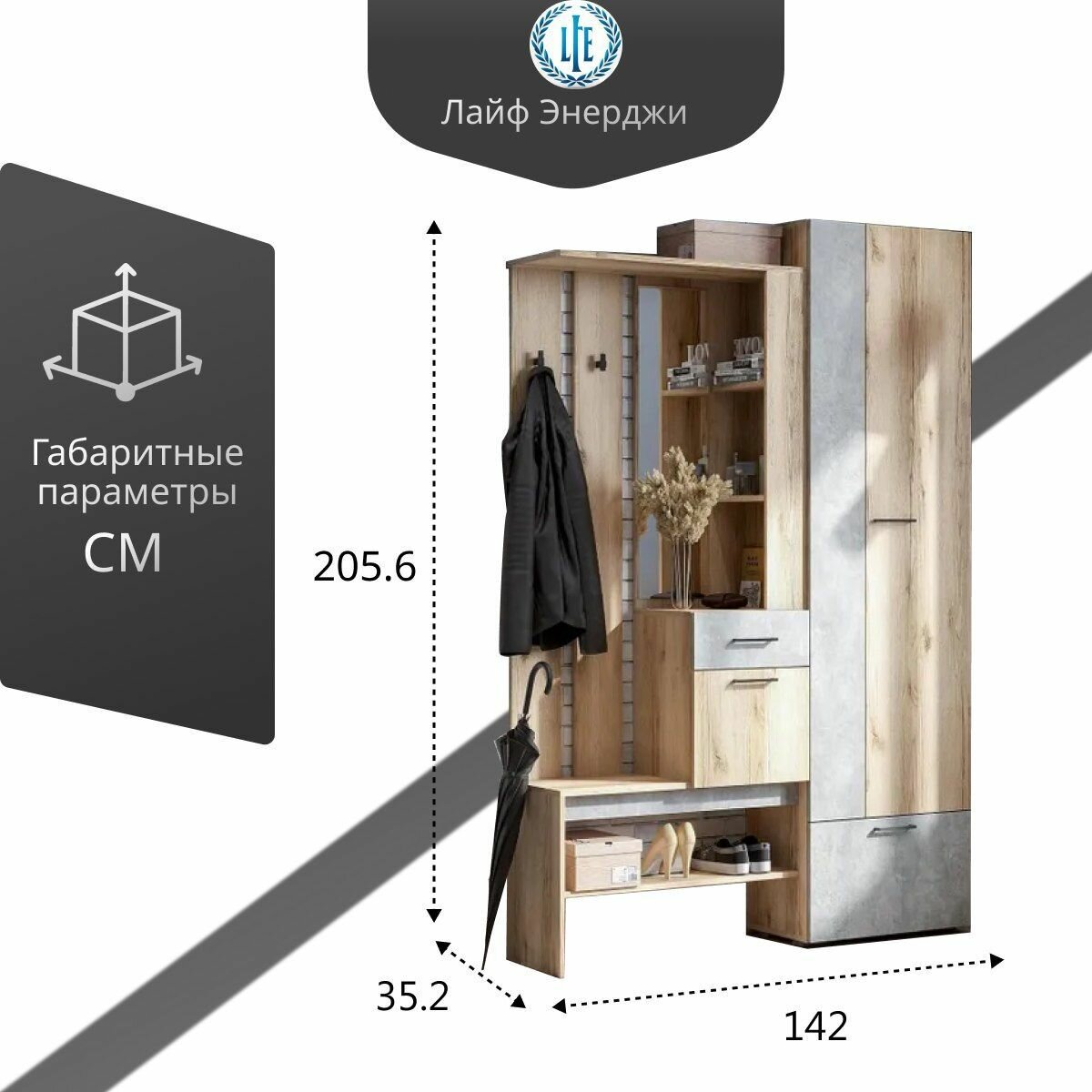Прихожая Фенди 1 дуб делано/цемент светлый, размер 142х35.2х205.6 (сборка универсальная) интересное: