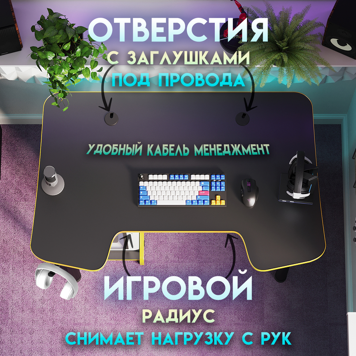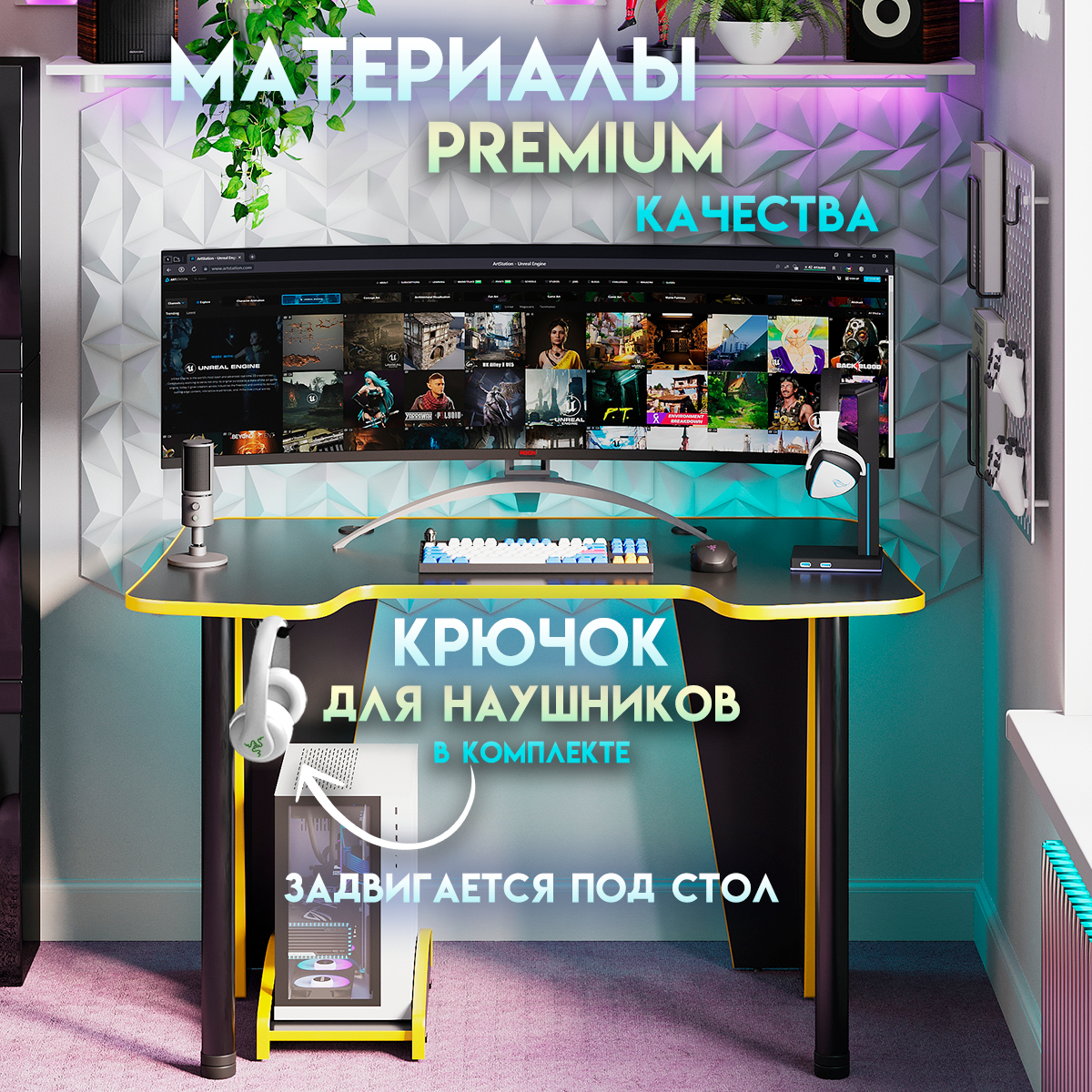 Купить Геймерский компьютерный игровой стол и подставка под блок черный-желтый / ДЭН-МАСТЕР / письменный стол для компьютера пк
