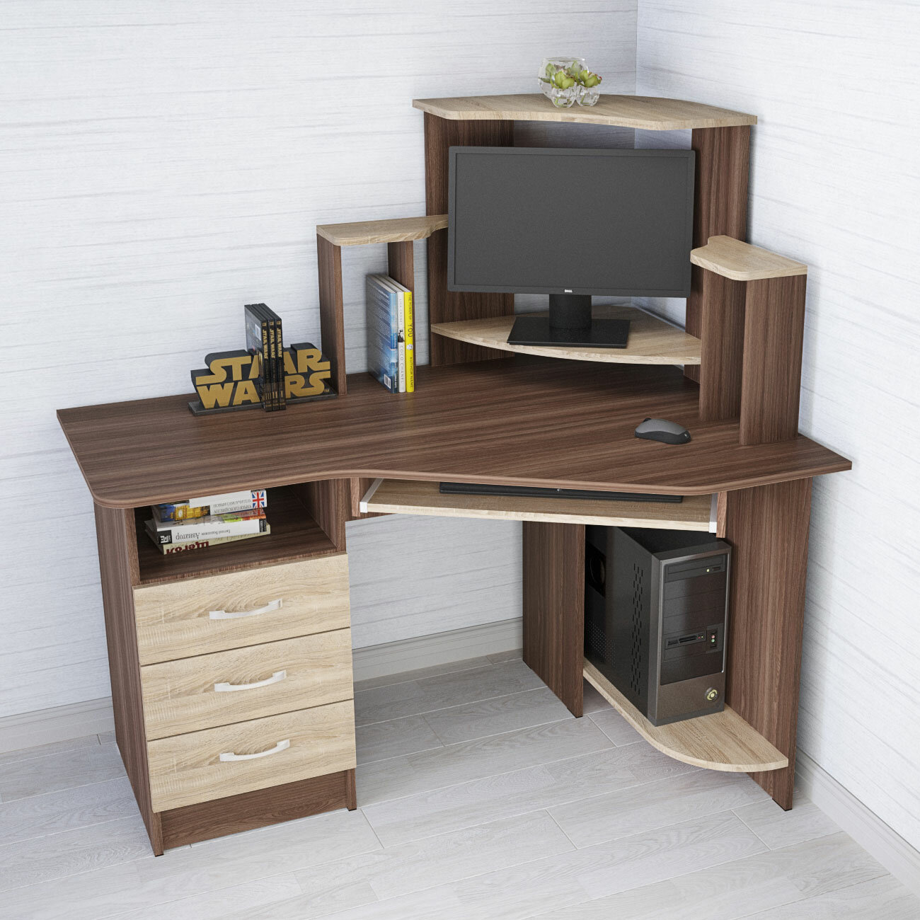Стол компьютерный Грета-7, ЛДСП, венге/дуб молочный, 133,5х130х90 см.