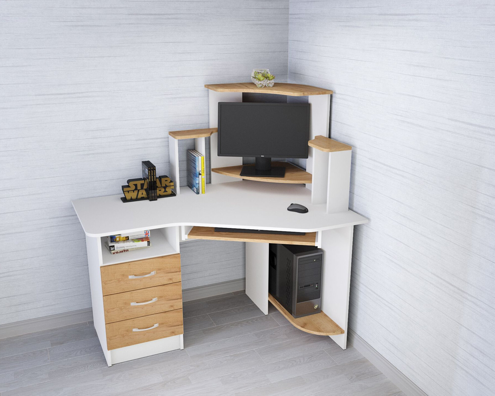 СохранитьСтол угловой компьютерный Грета-7 (1335х1300х900) Белый/Дуб крафт золотой интересное: