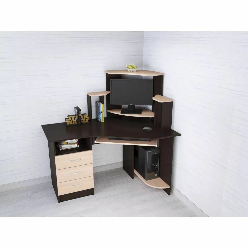 Стол компьютерный Грета-7, ЛДСП, венге/дуб молочный, 133,5х130х90 см.