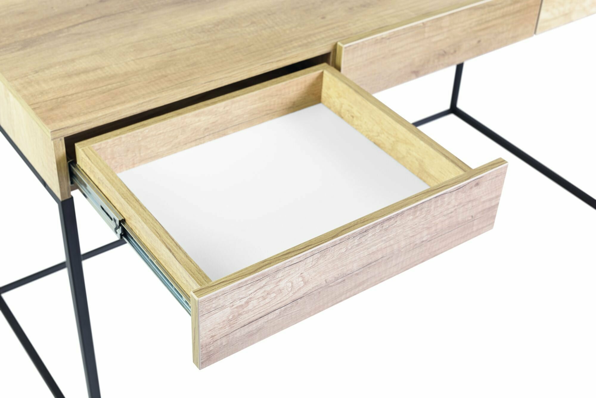 Компьютерный, письменный стол Блогер с ящиками, 100х50х75.5 см, Белый / Дуб Каньон / Белый, металлический каркас
