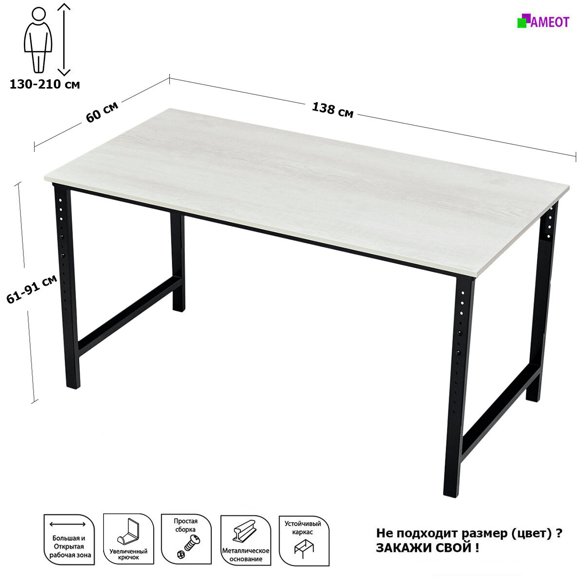 СохранитьКомпьютерный стол регулируемый по высоте Мадий 12Т ш138/г60/в61-91 таксония лофт на металлокаркасе интересное: