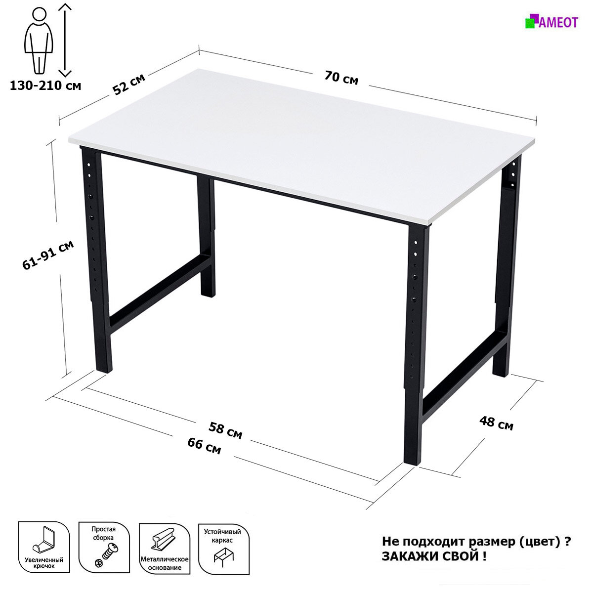 Купить Компьютерный стол регулируемый по высоте Мадий 12W ш70/г52/в61-91 белый/черный на металлокаркасе