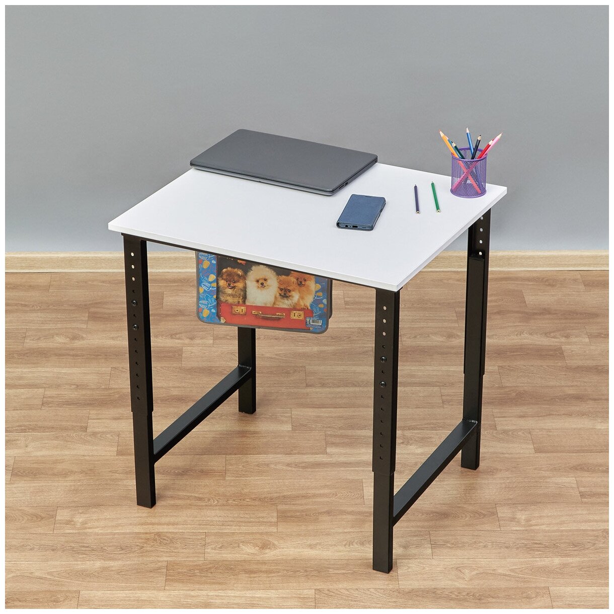 Компьютерный стол регулируемый по высоте Мадий 12WW ш70/г52/в61-91 белый на металлокаркасе