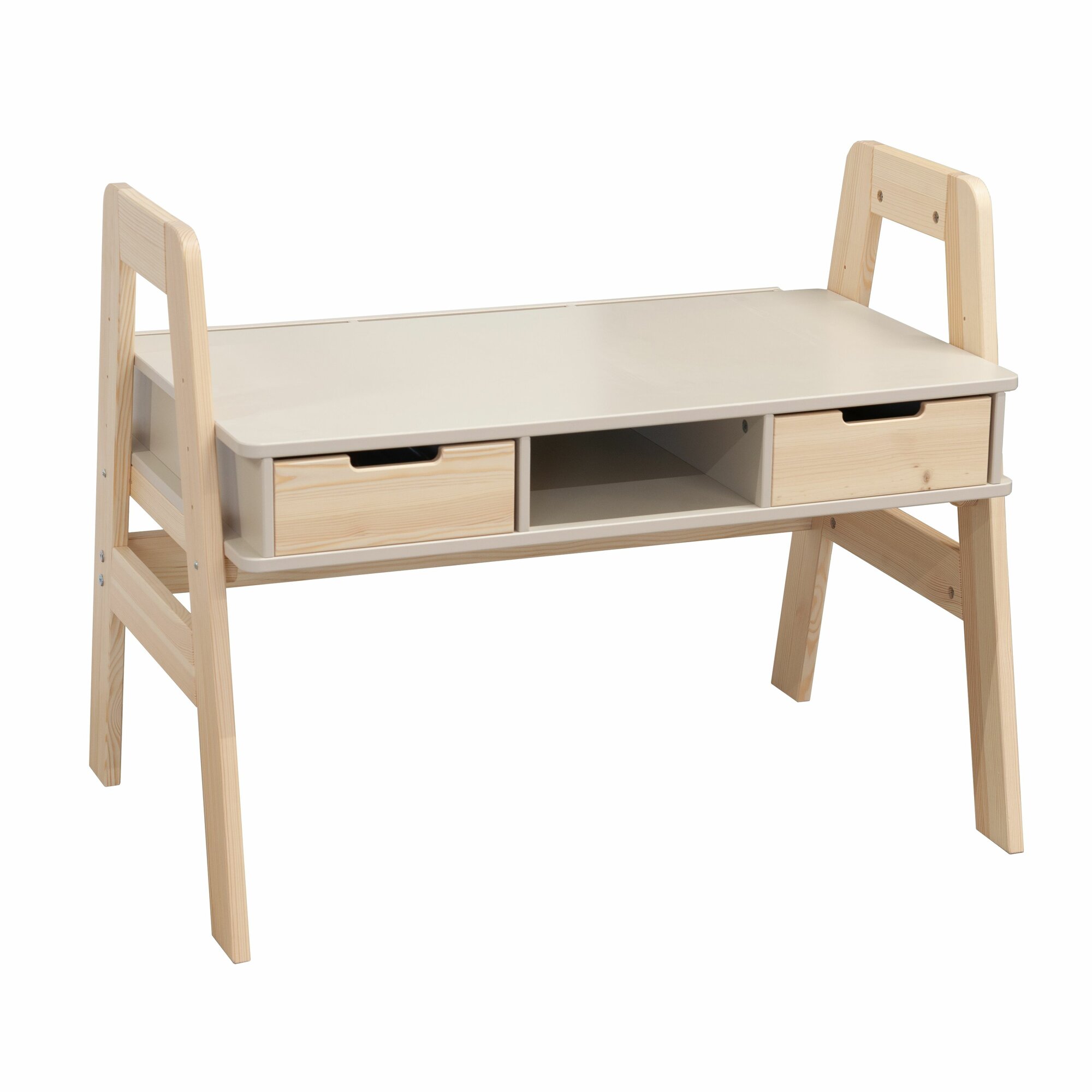 Dipriz Стол письменный Чек, детская парта 2 ящика, многоуровневая, с ножками из массива сосны, ЛДСП персидский жемчуг