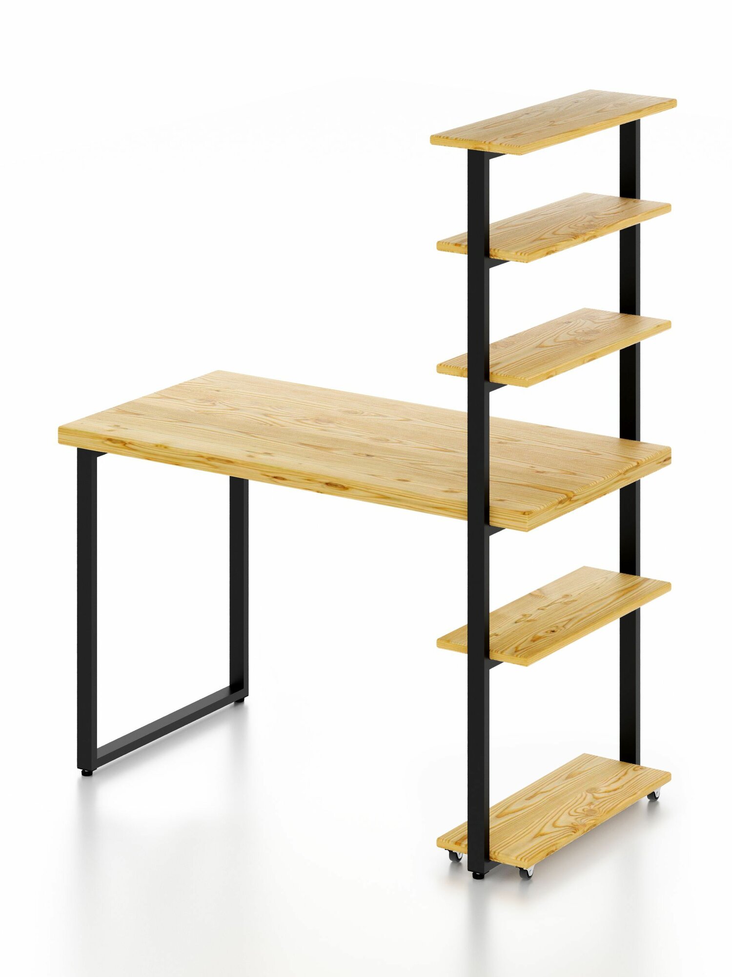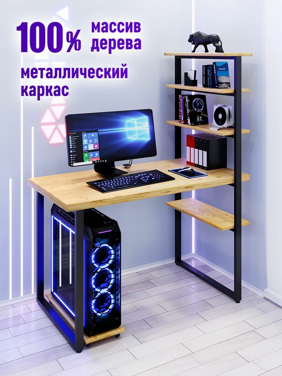 Стол компьютерный Loft с пятью полками, столешница без покраски из массива сосны 40 мм и черные металлические ножки, 110х60х148 см интересное: