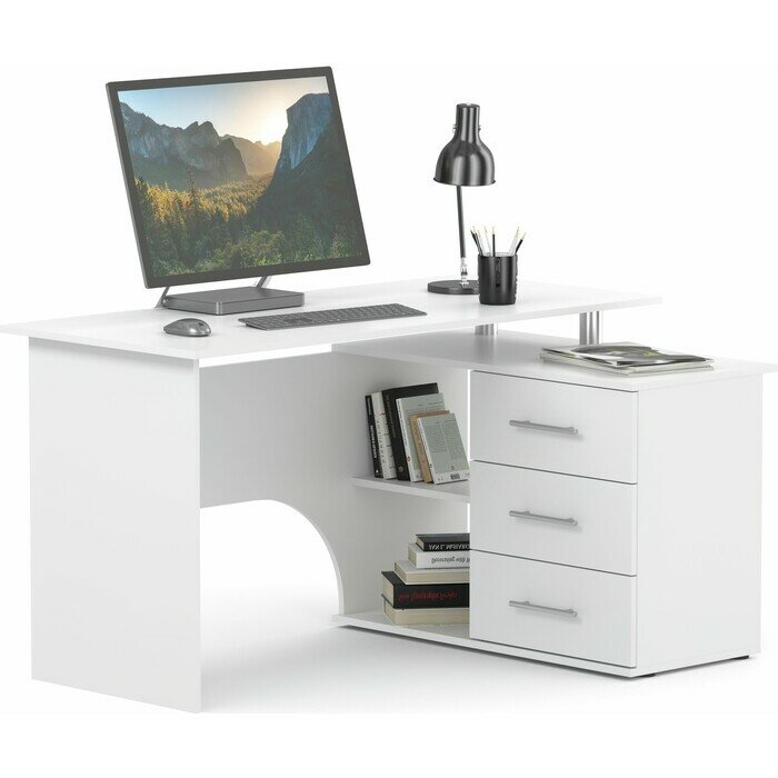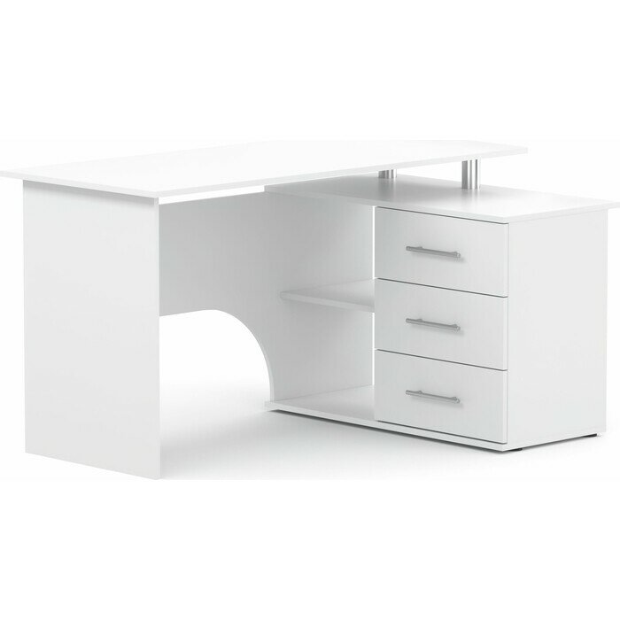 Купить Стол письменный Сокол КСТ-09П угловой тумба три ящика справа, цвет белый, размер 135х90х74см