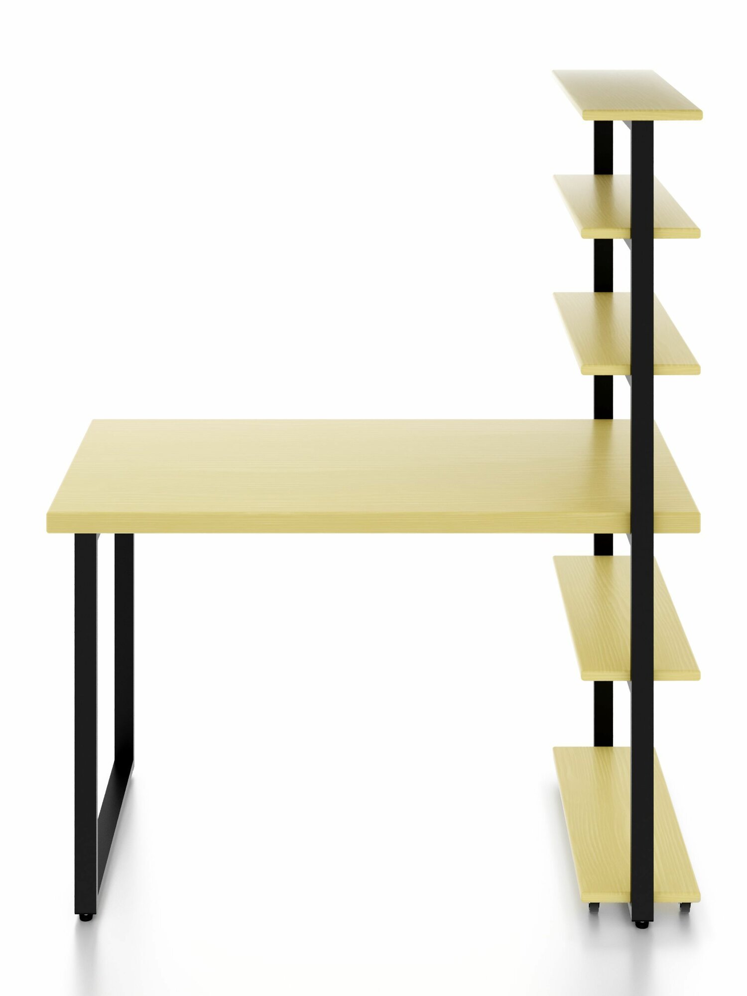 Стол компьютерный Loft с пятью полками, столешница цвета ванили из массива сосны 40 мм и черные металлические ножки, 90х60х148 см