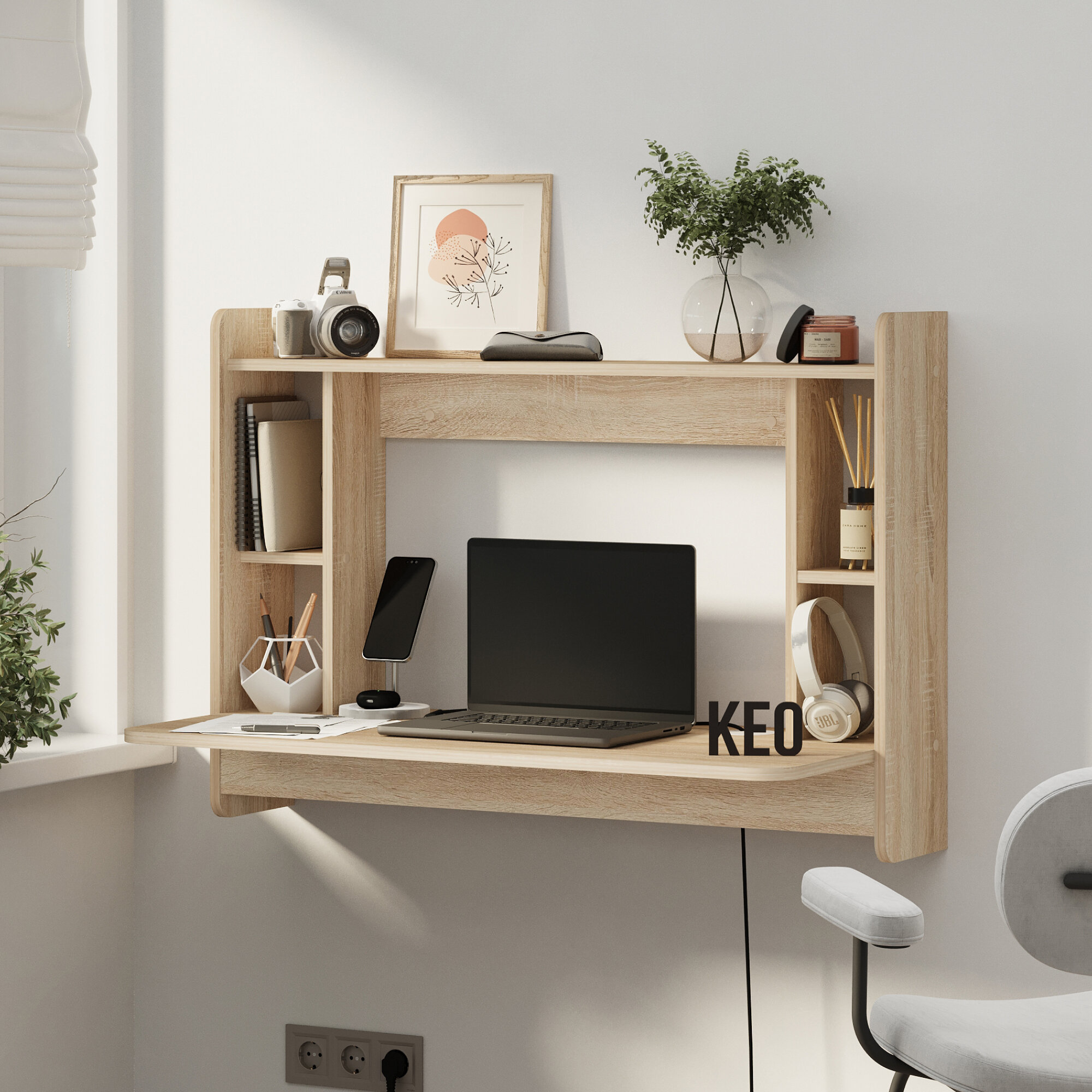 Купить Стол подвесной 44,6х103,2х71см с полками письменный компьютерный для ноутбука Кео СТМ-5 сонома бежевый
