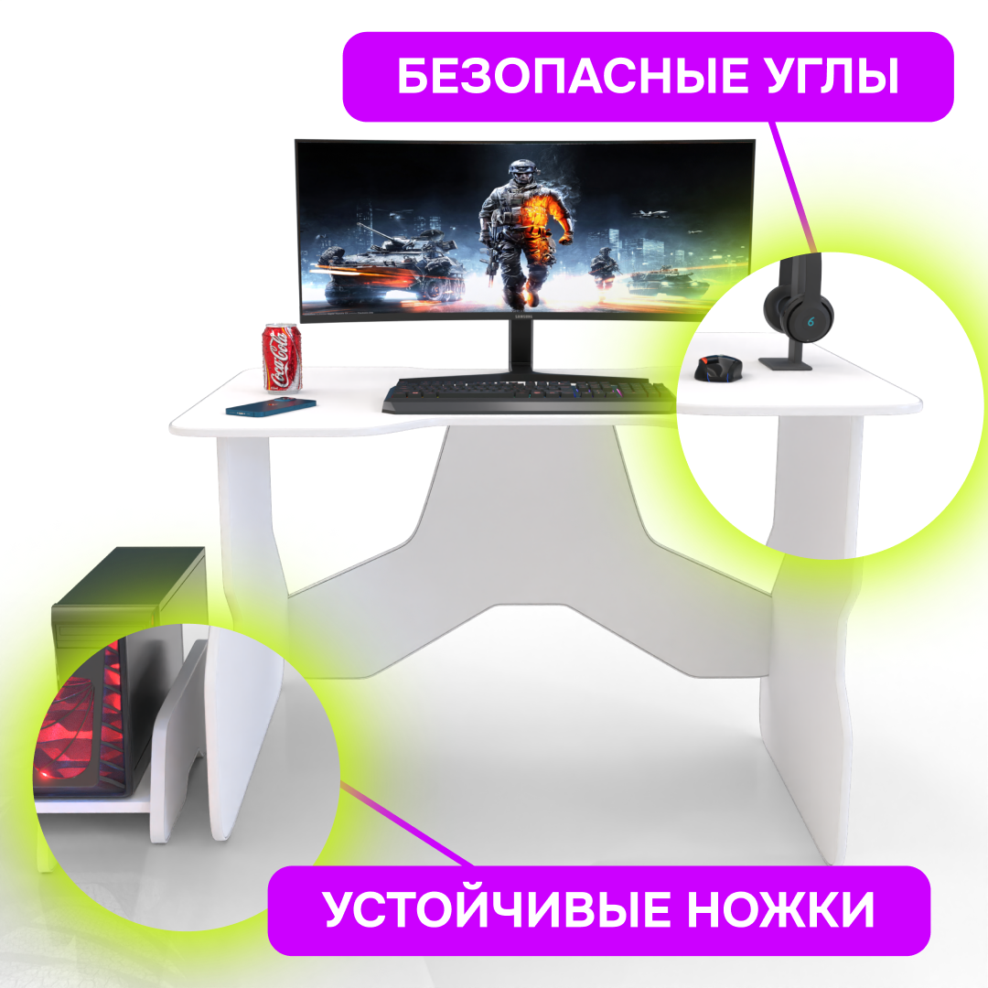 Игровой компьютерный стол для геймера белый с белой окантовкой с полкой под монитор 106х73х75