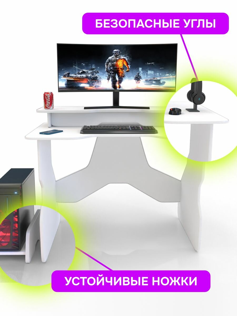 Купить Игровой компьютерный стол для геймера белый с белой окантовкой с полкой под монитор 106х73х75