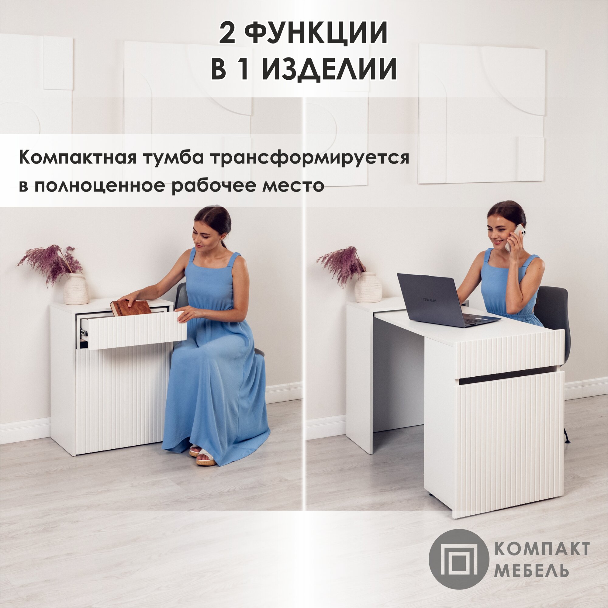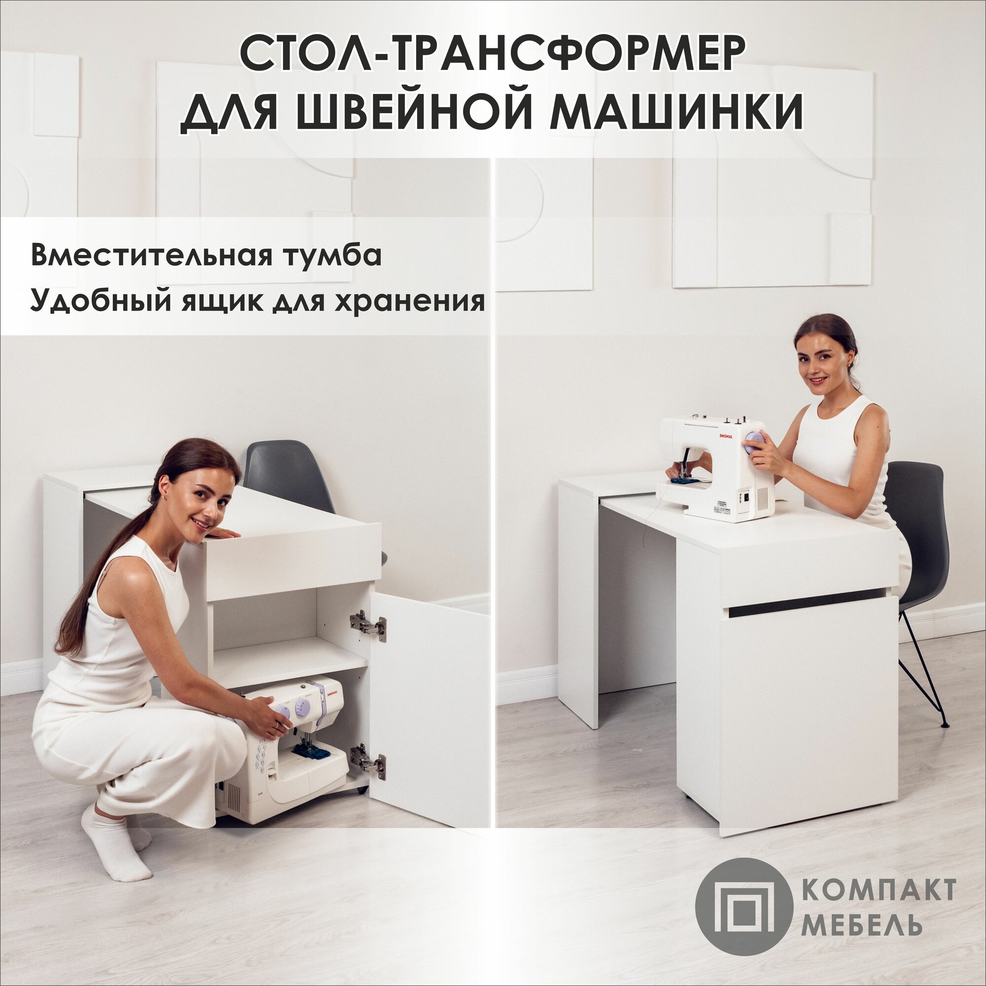 Стол трансформер с рифленым фасадом белый, для швейной машины, ноутбука, маникюра Компакт-Мебель интересное:
