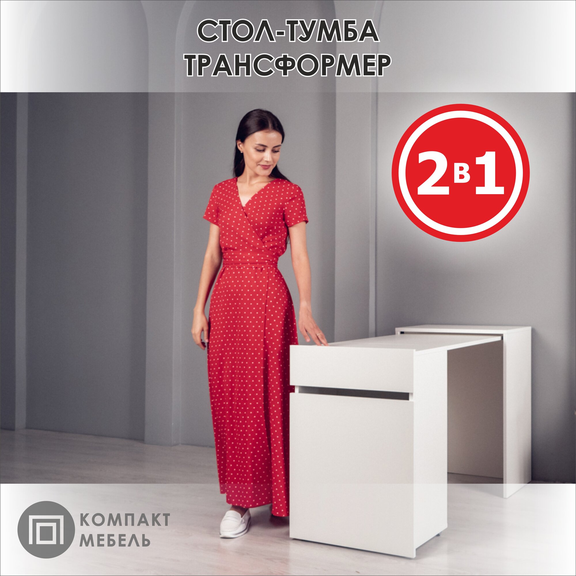 Стол трансформер письменный белый, для швейной машины, ноутбука, маникюра Компакт-Мебель интересное: