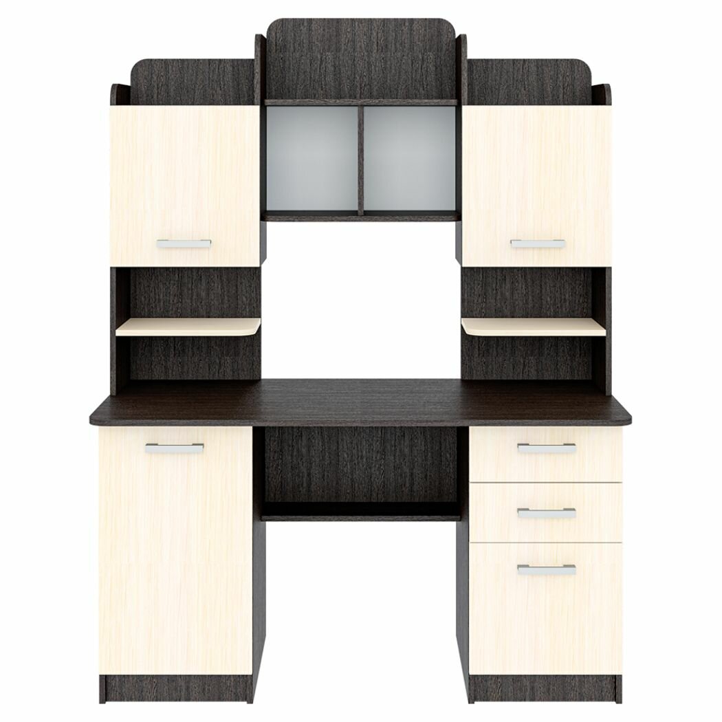 Стол компьютерный "МК Пирамида" СК-09 с надстройкой, две тумбы, 2 ящика, цвет венге/дуб молочный, 182х140х60 см