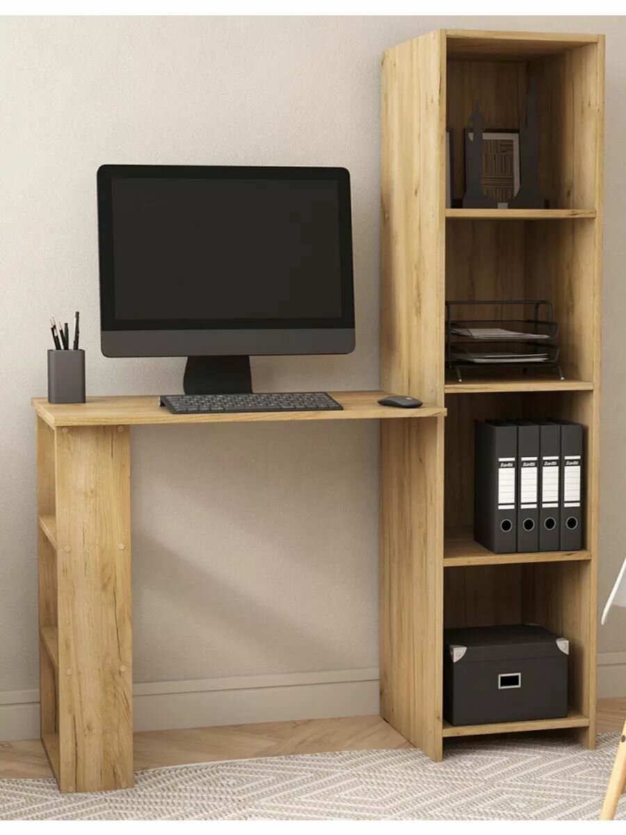 Письменный, компьютерный стол Юджин с полками, Стандарт, 119х49х149 см, Дуб Крафт интересное: