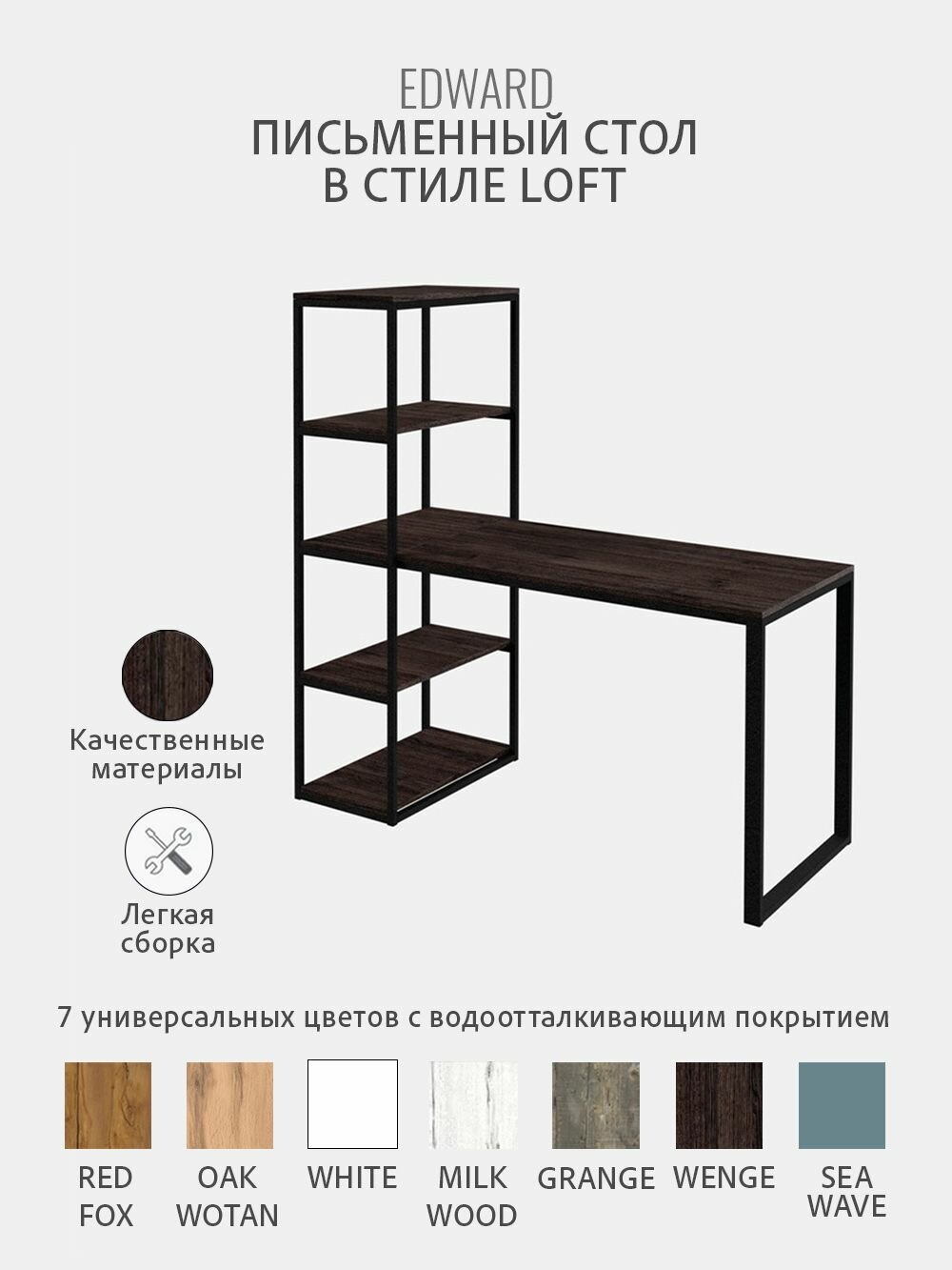 СохранитьСтол письменный с полками EDWARD, темно-коричневый, компьютерный для школьника, офиса, рабочий гростат 140х60х75 см. интересное: