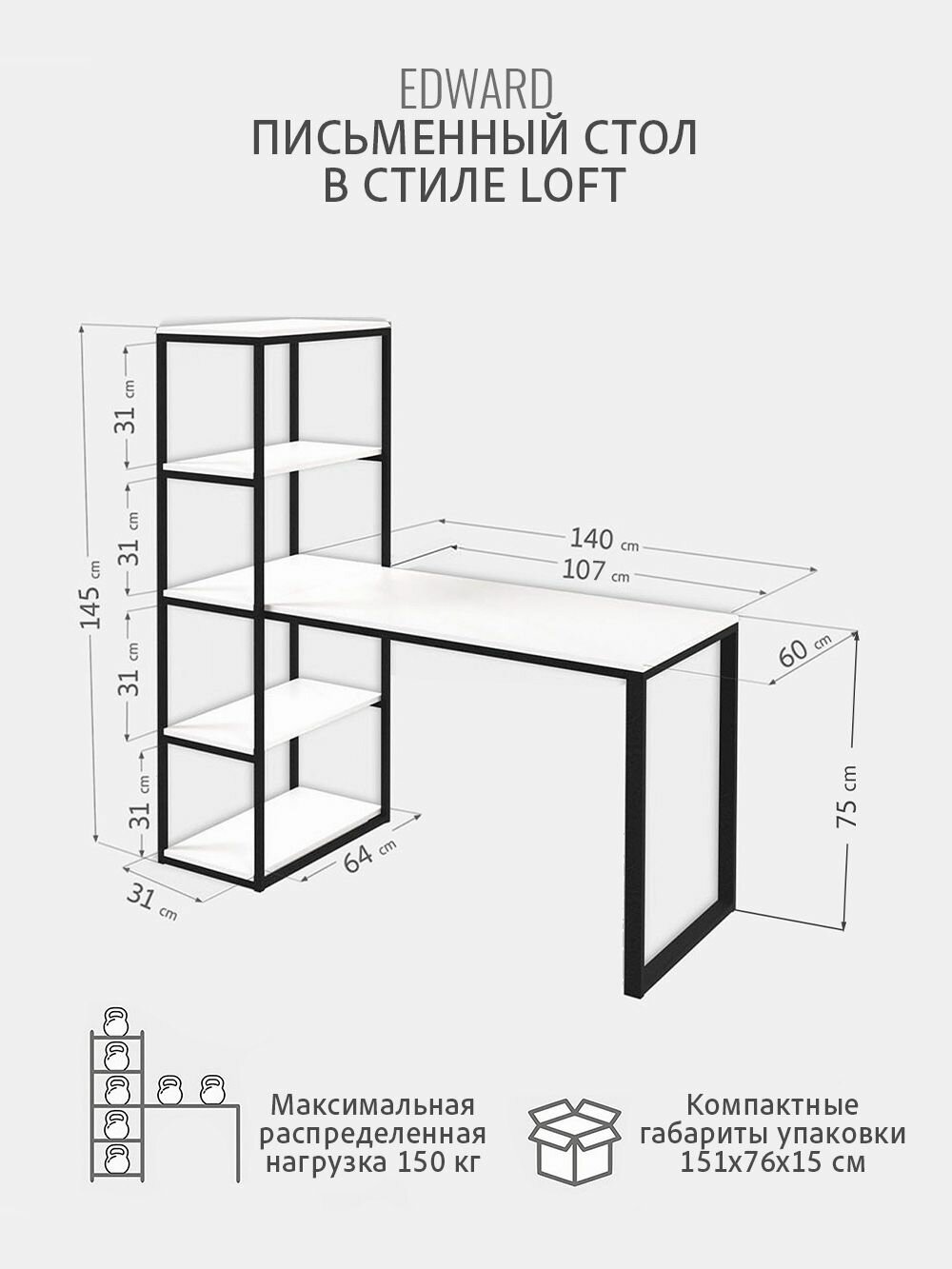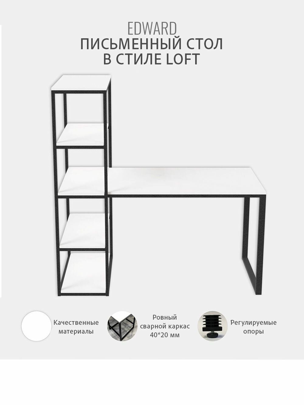 СохранитьСтол письменный с полками EDWARD, белый, стол компьютерный, для школьника, офиса, рабочий гростат 140х60х75 см. интересное: