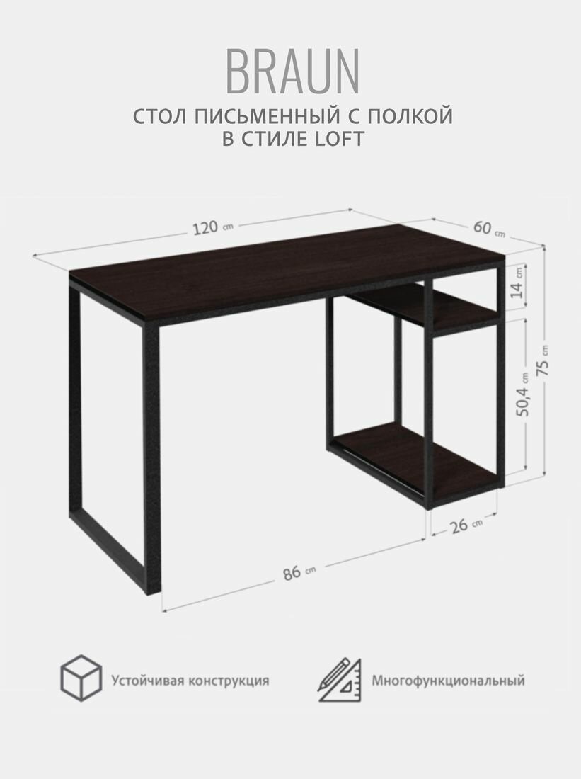 СохранитьСтол письменный компьютерный игровой, BRAUN loft, с полкой, 120x60x75 см, гростат интересное: