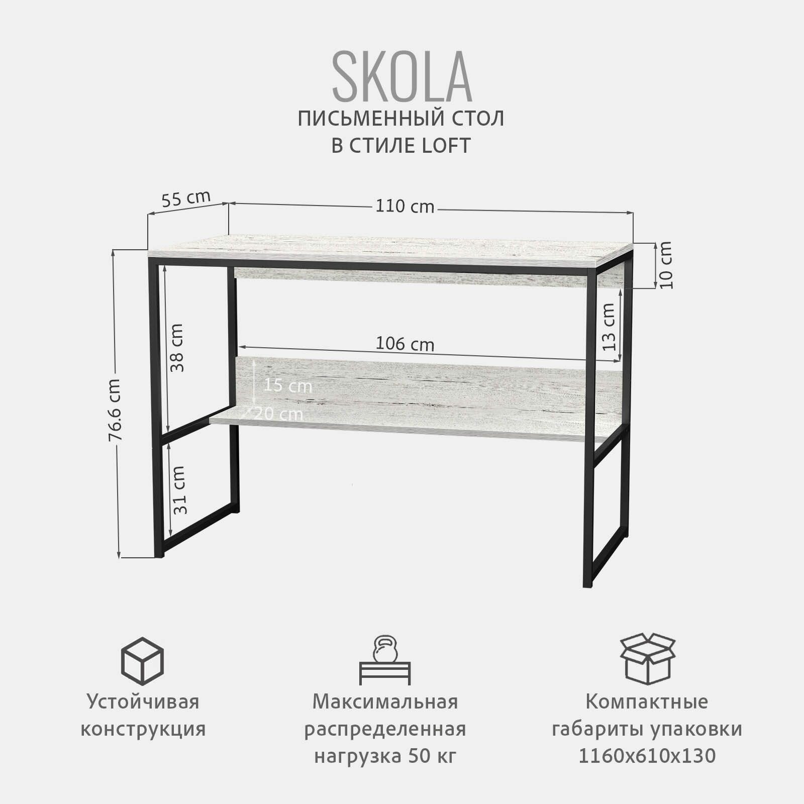 СохранитьСтол письменный SKOLA loft, светло-серый, компьютерный, офисный, парта для школьника, 110х55х76.5 см, гростат интересное: