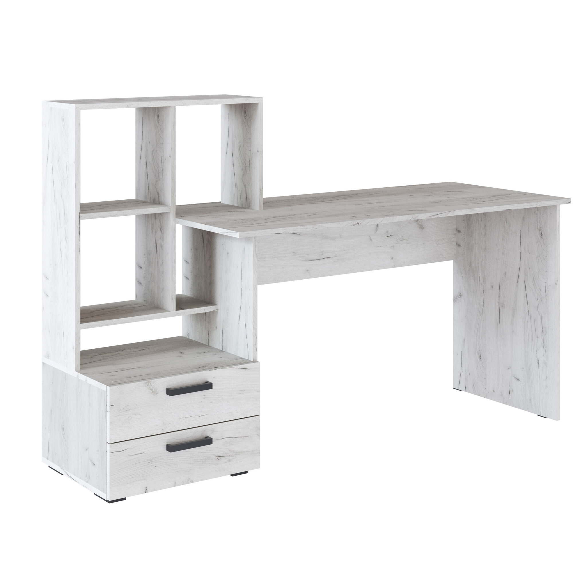 Купить Стол компьютерный, письменный для школьника с ящиками и полками Джой, 110x165x60 см, цвет Дуб крафт белый