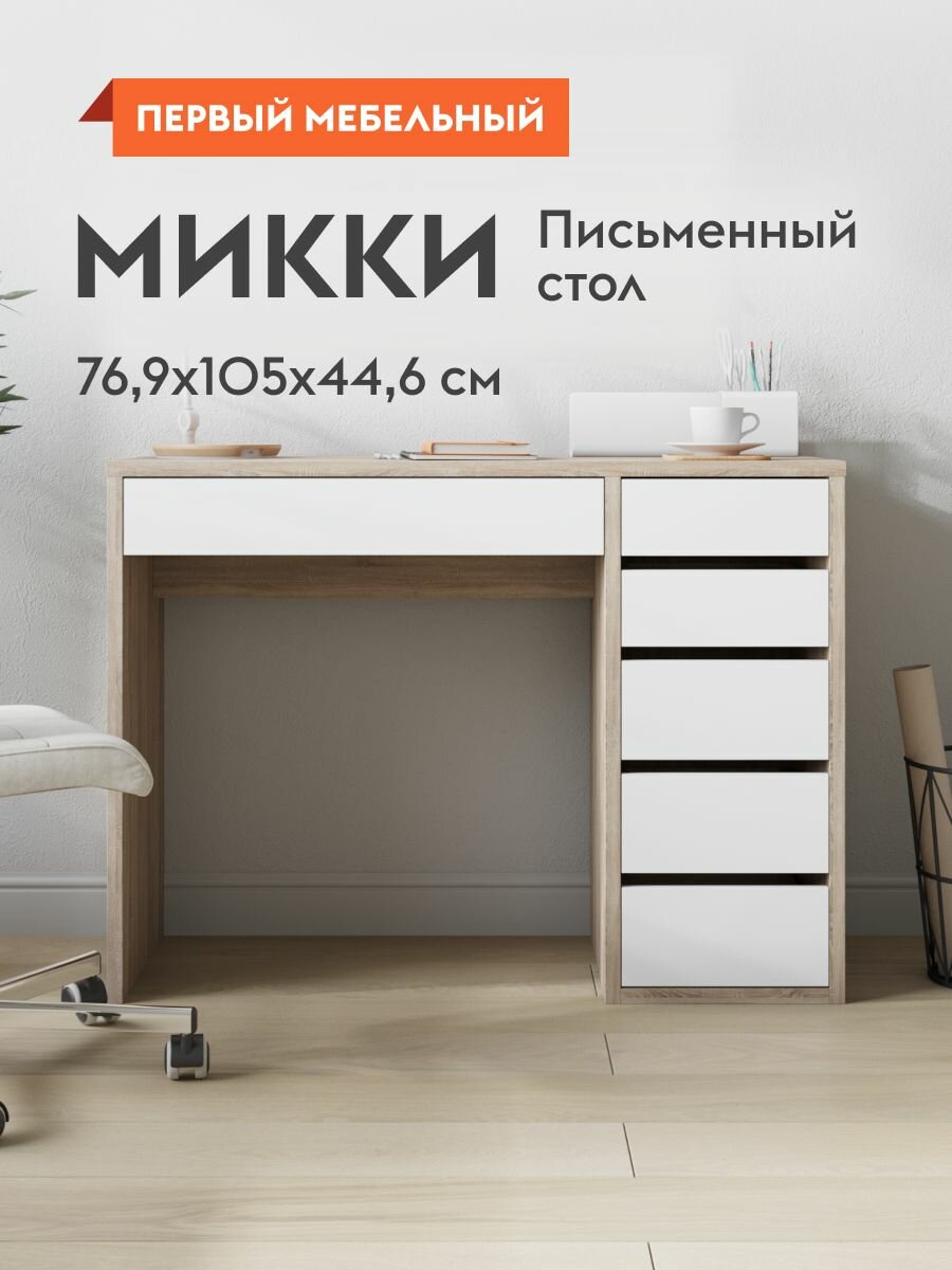 Компьютерный, письменный стол с ящиками Микки, 105х44.6х76.9 см, Столешница Дуб Сонома / Корпус Белый Правый интересное: