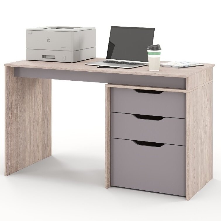 Купить Компьютерный стол с тумбой, с ящиками S Grand Лаворо 130х60х75 см (Анкор светлый/Вулканический серый)