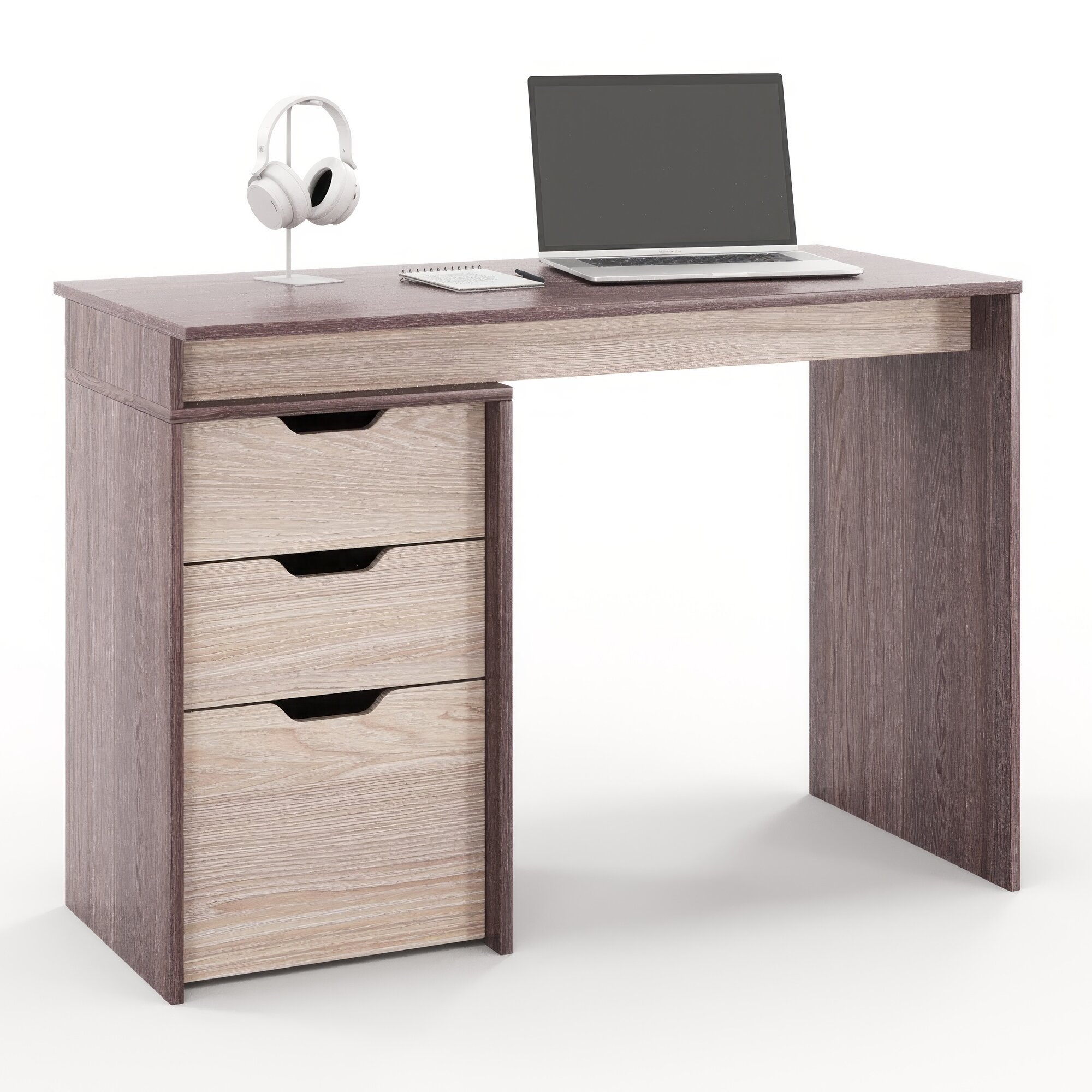 Письменный стол с тумбой, с ящиками S Grand Лаворо 110х50х75 см (Дуб бунратти/Вулканический серый)