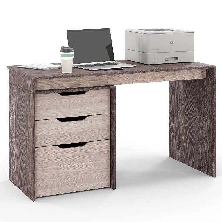 Письменный стол с тумбой, с ящиками S Grand Лаворо 130х60х75 см (Дуб бунратти/Вулканический серый)