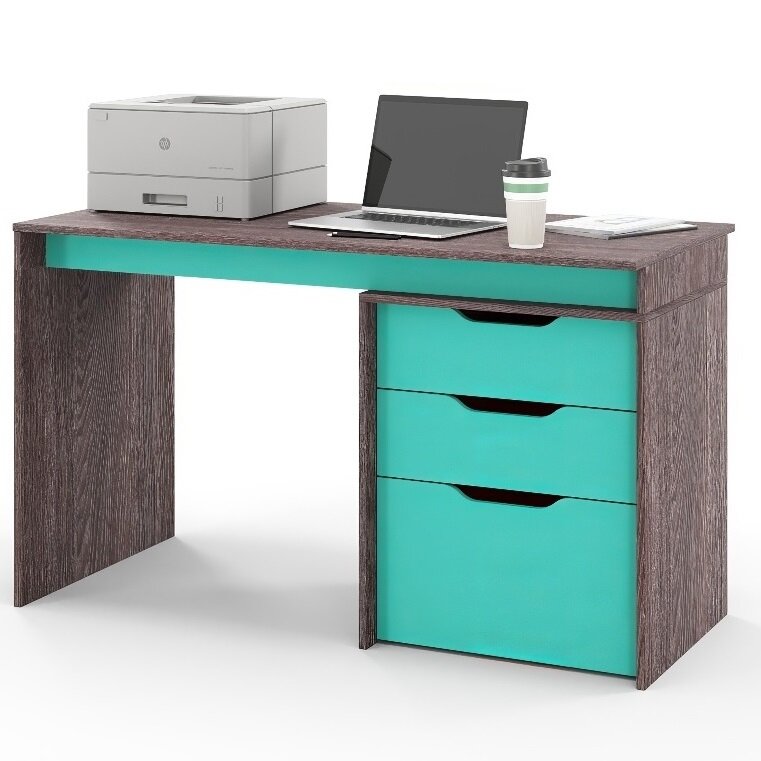 Купить Компьютерный стол с тумбой, с ящиками S Grand Лаворо 130х60х75 см (Анкор тёмный/Аква)