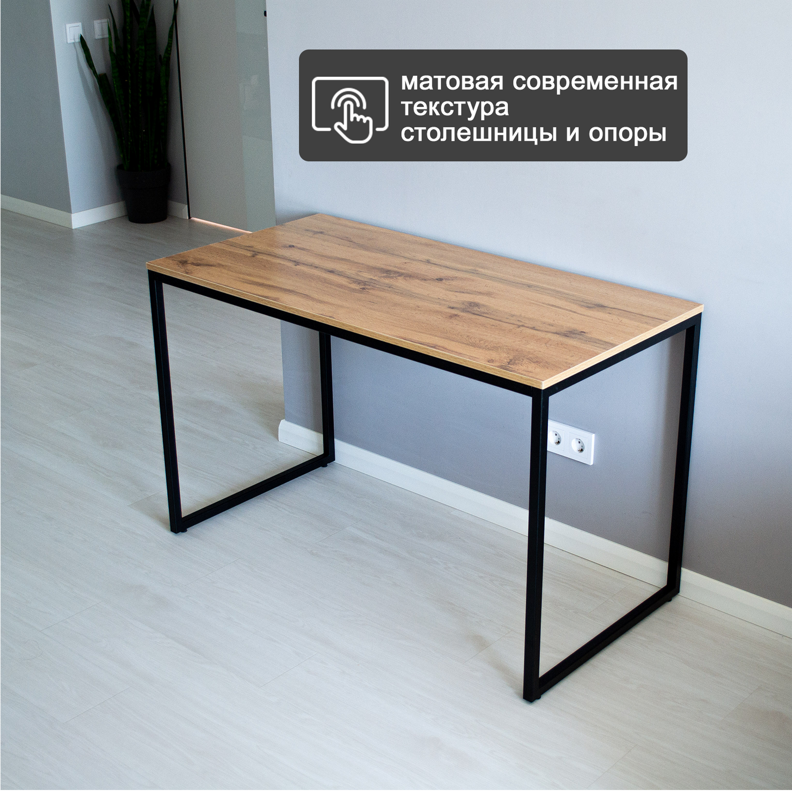 Стол рабочий кухонный письменный компьютерный обеденный для кухни лофт 110х60х75 см, Черный/Дуб вотан