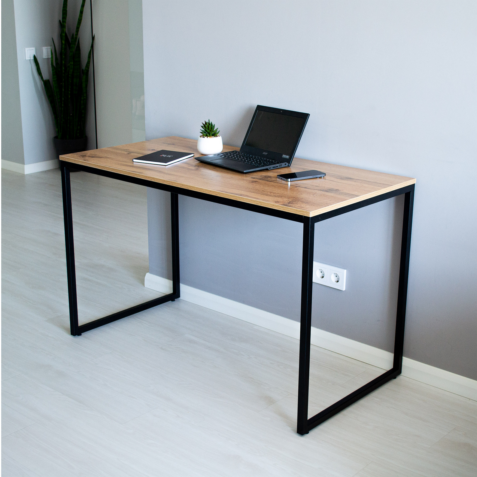 Стол рабочий кухонный письменный компьютерный обеденный для кухни лофт 110х60х75 см, Черный/Дуб вотан