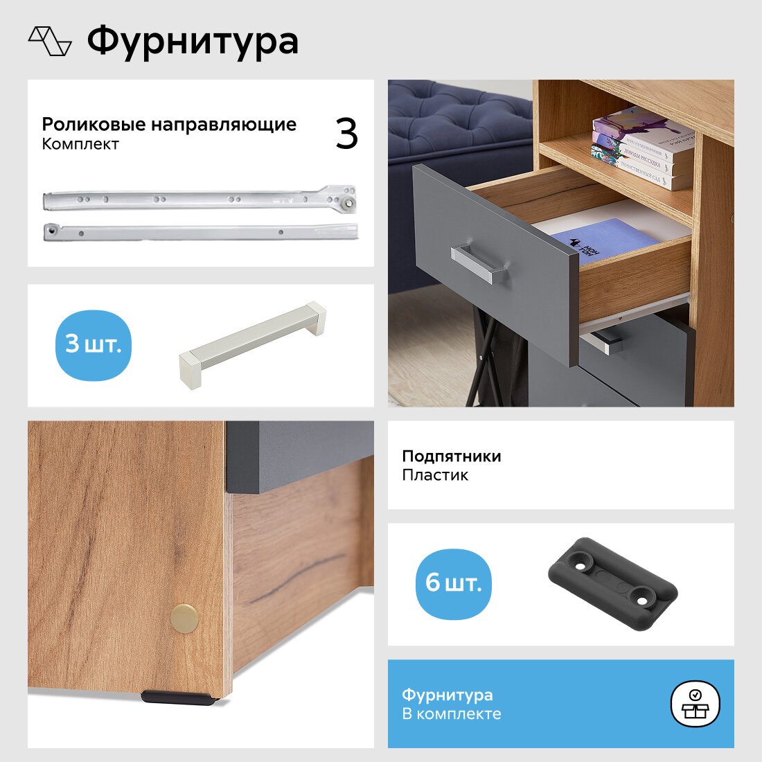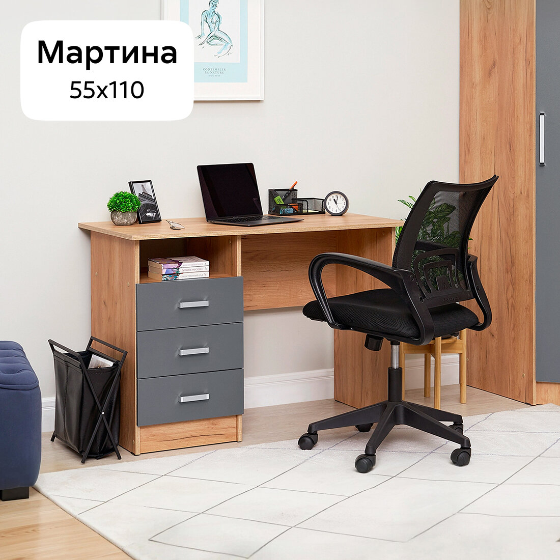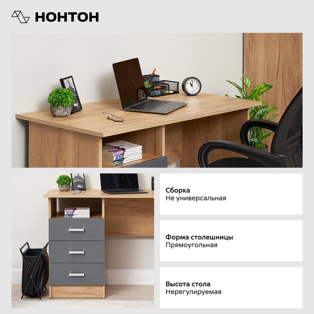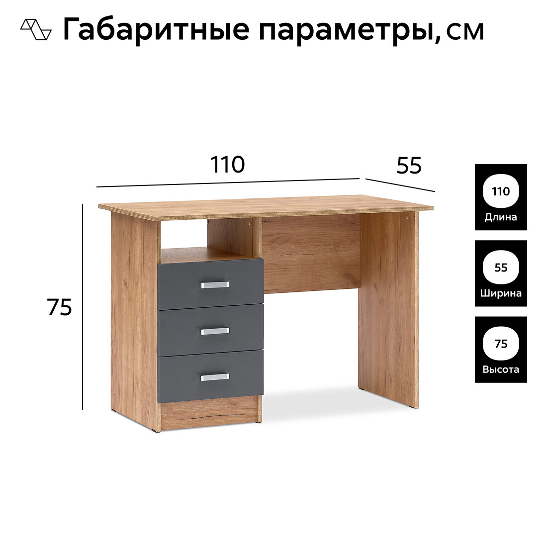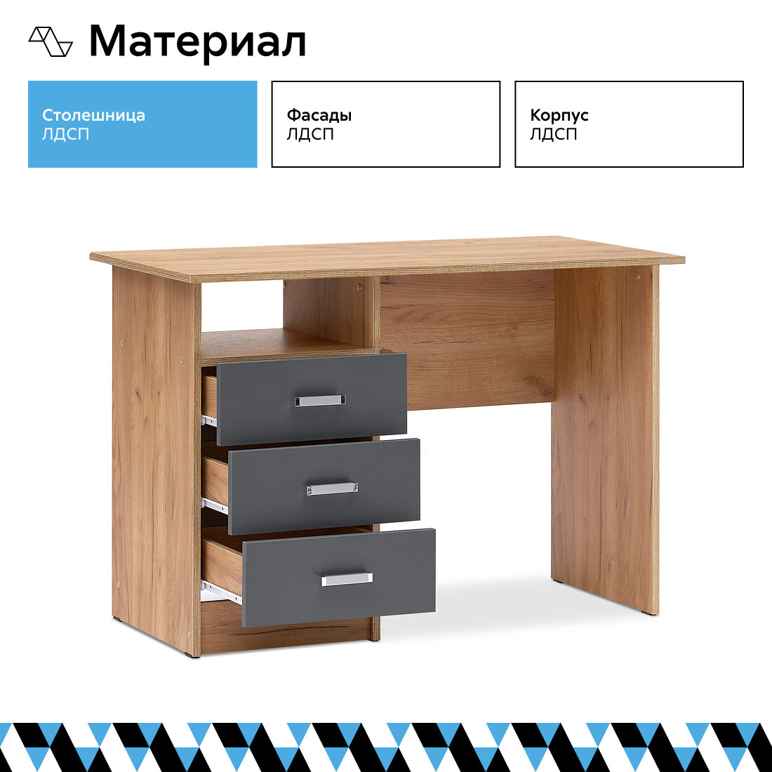 Стол письменный с ящиками детский Нонтон Мартина, графит / дуб крафт, 110x55x75 см интересное: