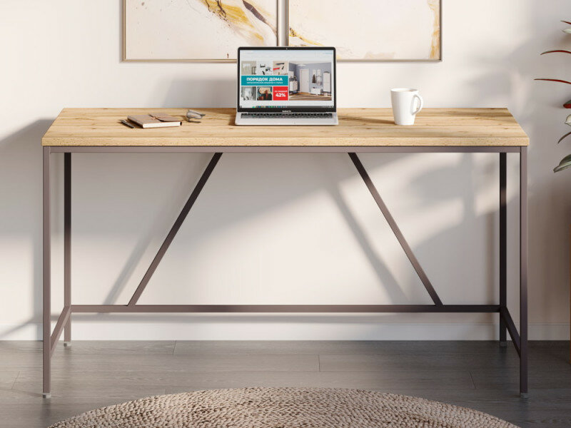 Стол письменный, компьютерный на металле Руби ТМ ДЭФО 118x60x73.7 см, дуб натюрель / черный