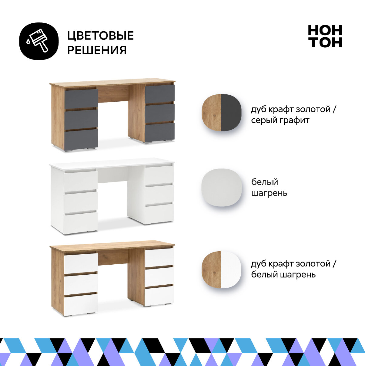 Стол письменный с ящиками Нонтон Ирма белый шагрень, 142x50x73 см интересное: