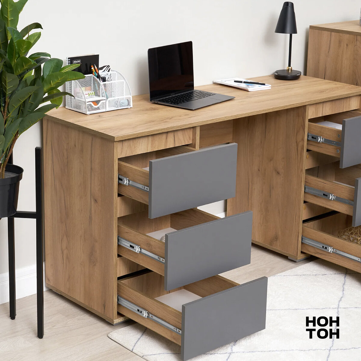 Купить Стол письменный с ящиками Нонтон Ирма дуб крафт золото / серый графит 142x50x73 см
