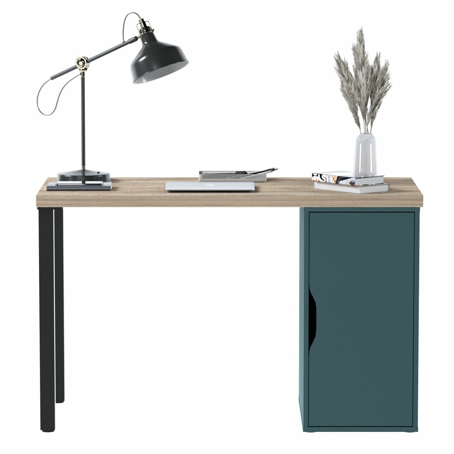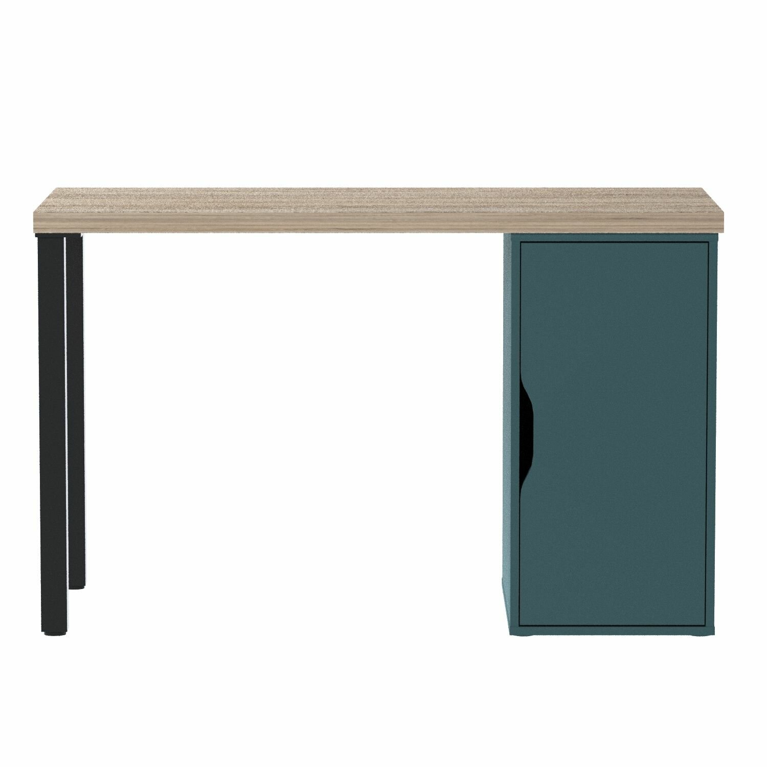 Купить Стол письменный ингар с дверцей , 120х75х55 см, серо-бирюзовый/черный, столешница дуб беленый