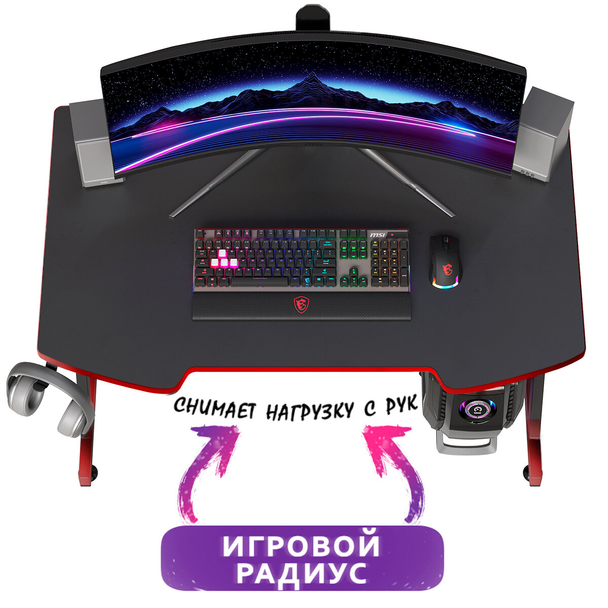 Геймерский компьютерный игровой стол Бекар черный-красный / дэн-мастер / офисный, письменный стол для компьютера пк интересное: