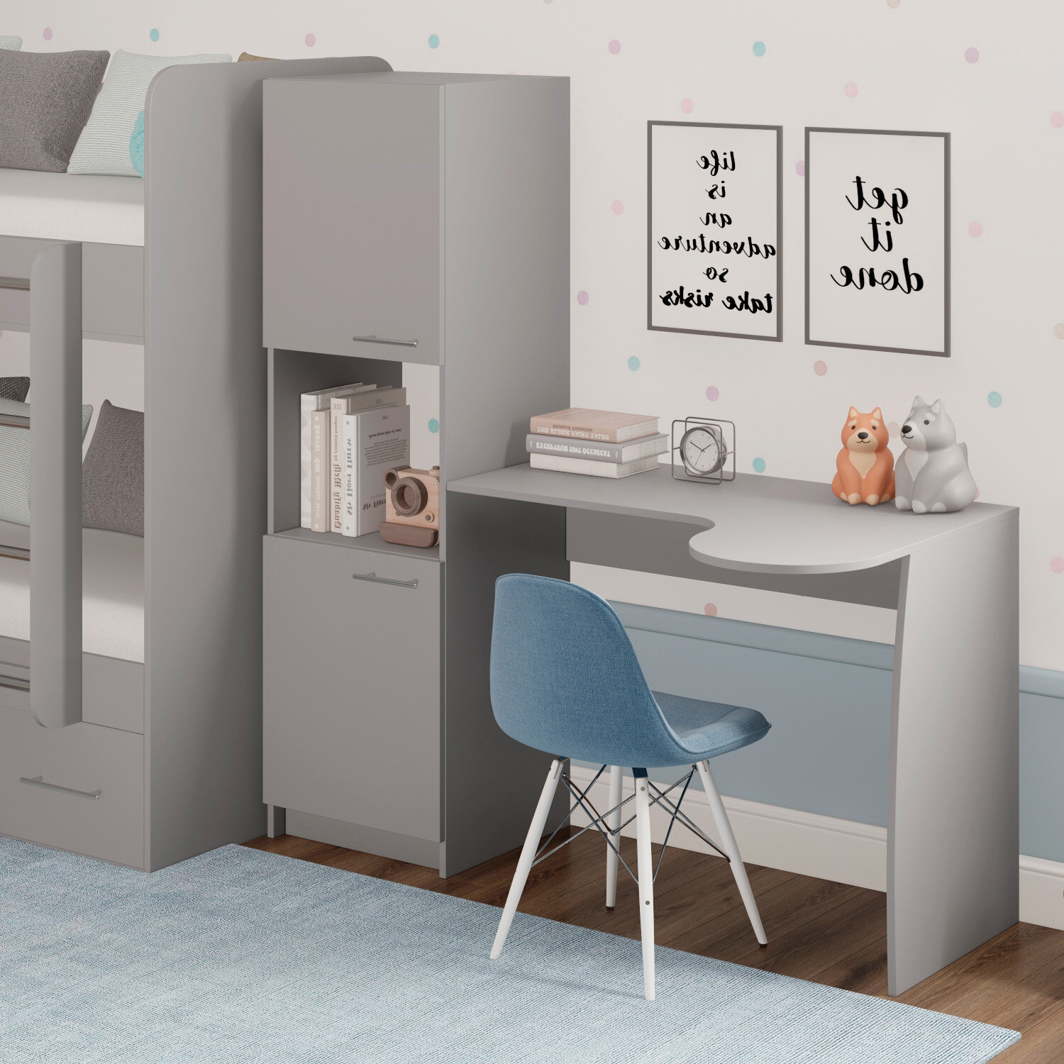 Письменный стол со стеллажом, с пеналом, Есэндвич Лаворо, 145x67,5х150 см, правый (Вулканический серый)