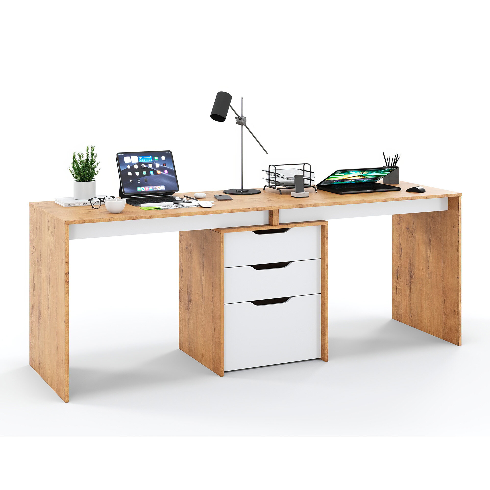 Купить Письменный стол для двоих, двойной, с тумбой, с ящиками Grand Лаворо 200х60х75 см (Дуб бунратти/Белый)