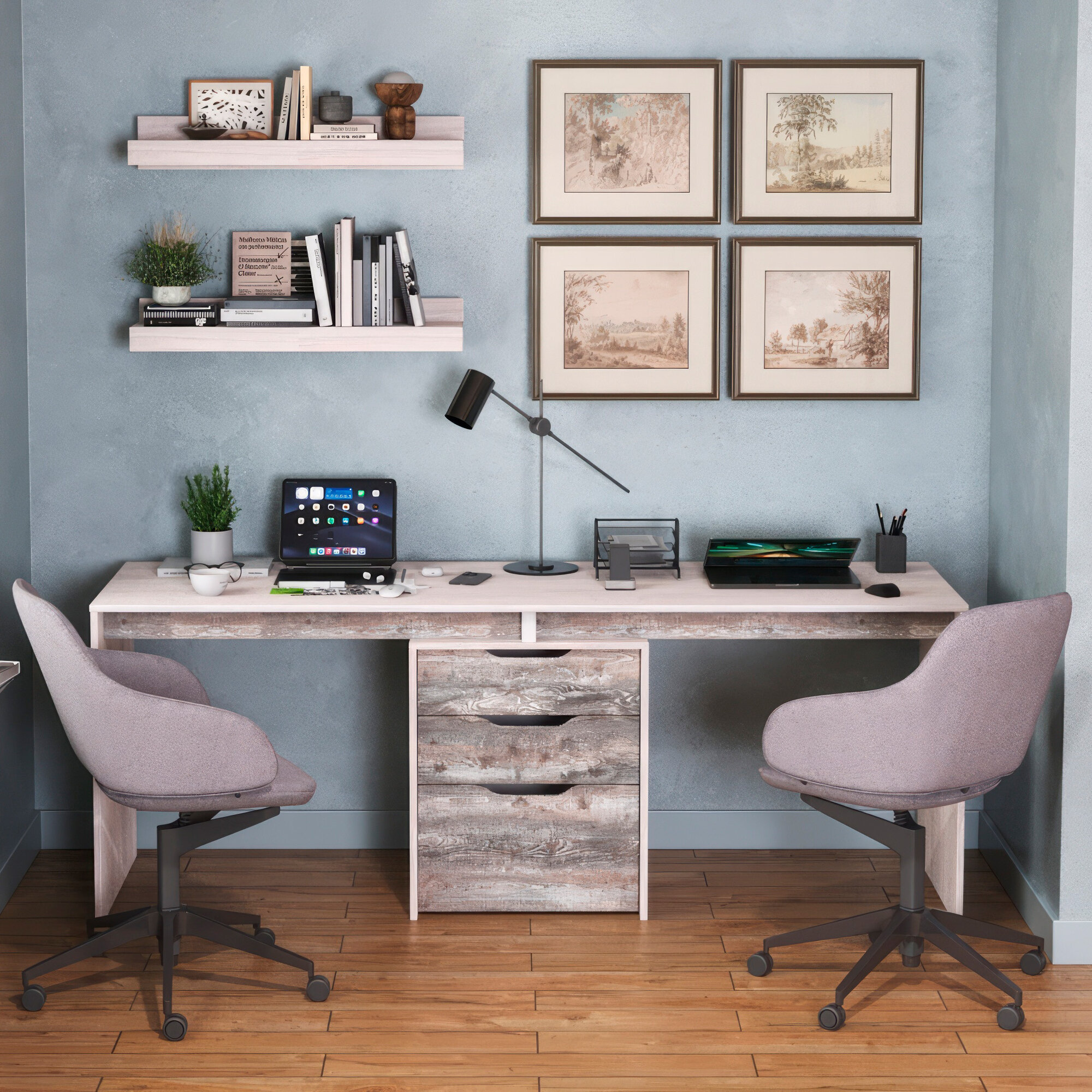 Письменный стол двойной, с тумбой, с ящиками Double Grand Лаворо 220х60х75 см (Анкор белый/Бетон пайн экзотик)
