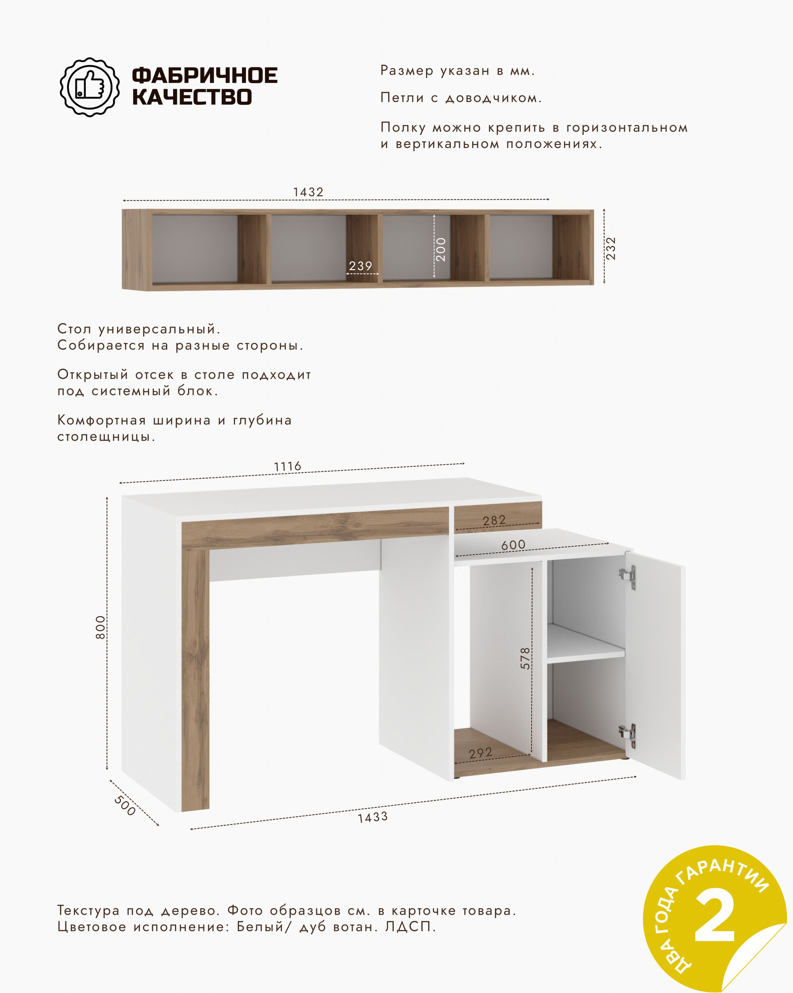 Компьютерный стол OXFORD К8 Белый/Дуб вотан интересное:
