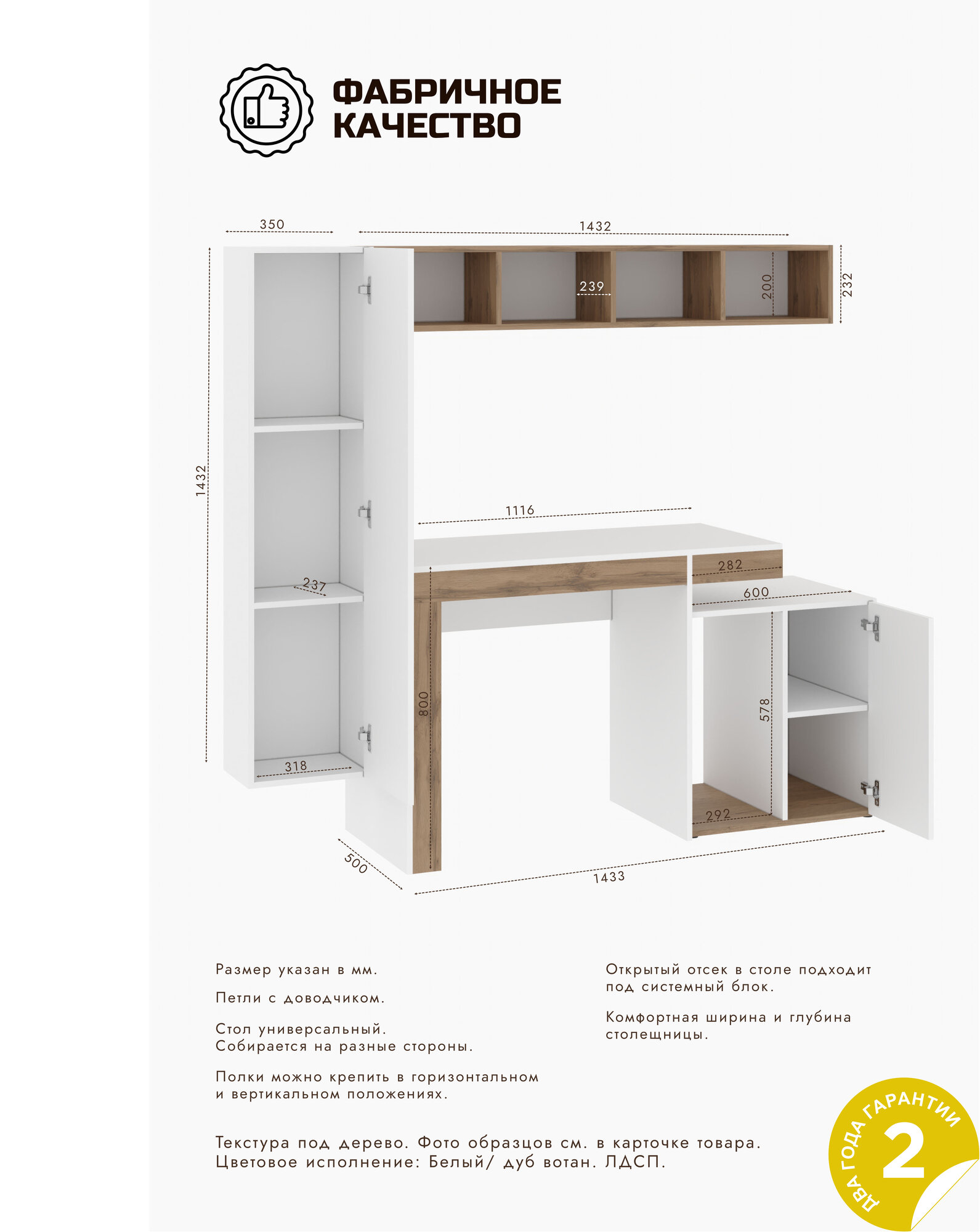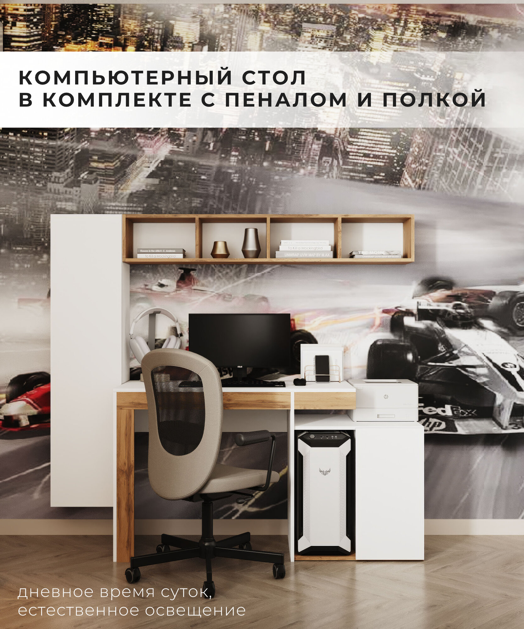Компьютерный стол OXFORD К3 Белый/Дуб вотан интересное: